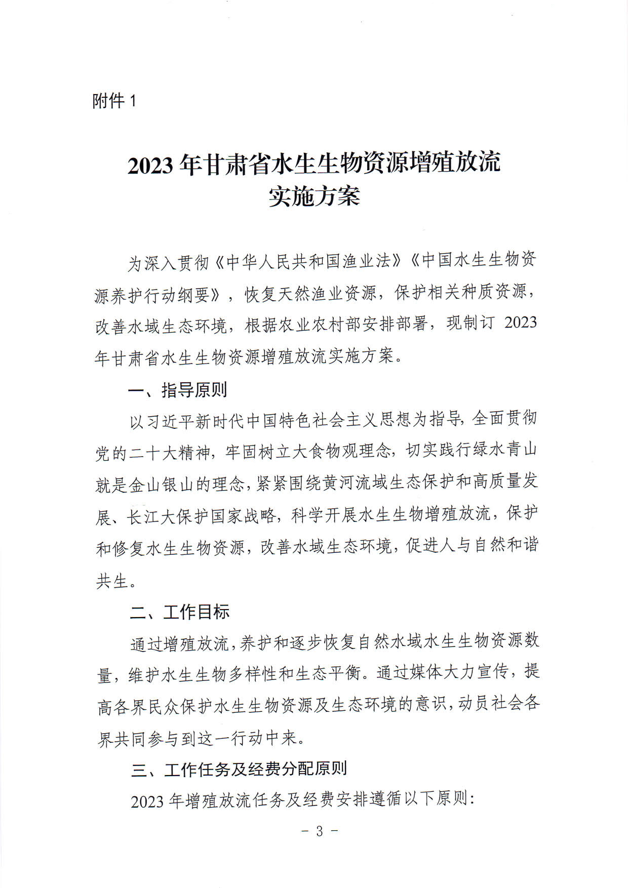 1.2023年甘肃省水生生物资源增殖放流实施方案
