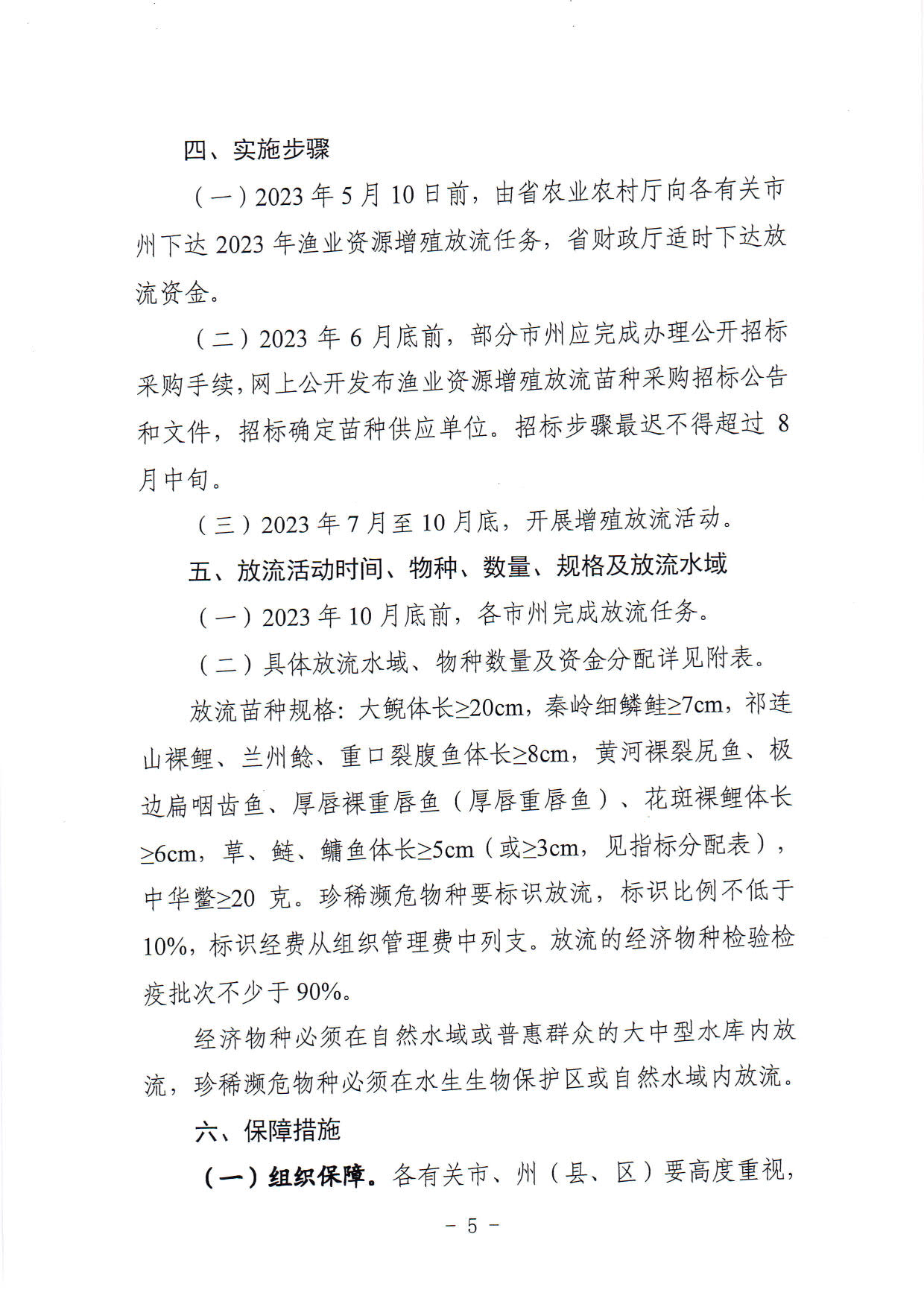 2023年甘肃省水生生物资源增殖放流实施方案