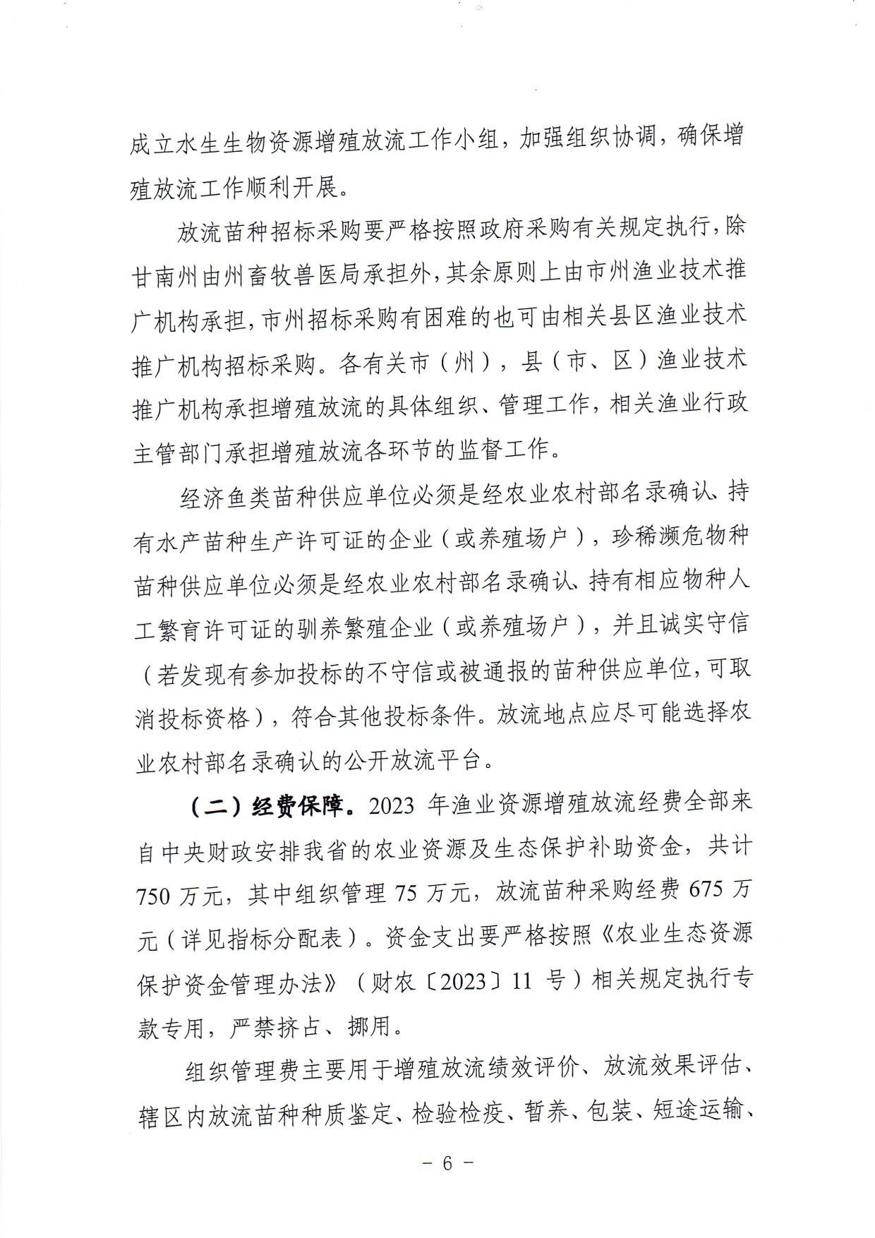 根据《财政部关于下达2023年农业生态资源保护资金预算的通知》(财农〔2023〕22号)精神,省农业农村厅制定了《2023年甘肃省水生生物资源增殖放流实施方案》,现将渔业资源保护资金及任务计划下达你们,请按照实施方案的有关要求,认真贯彻实施。