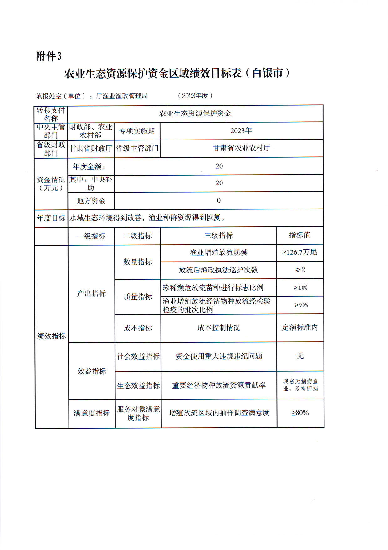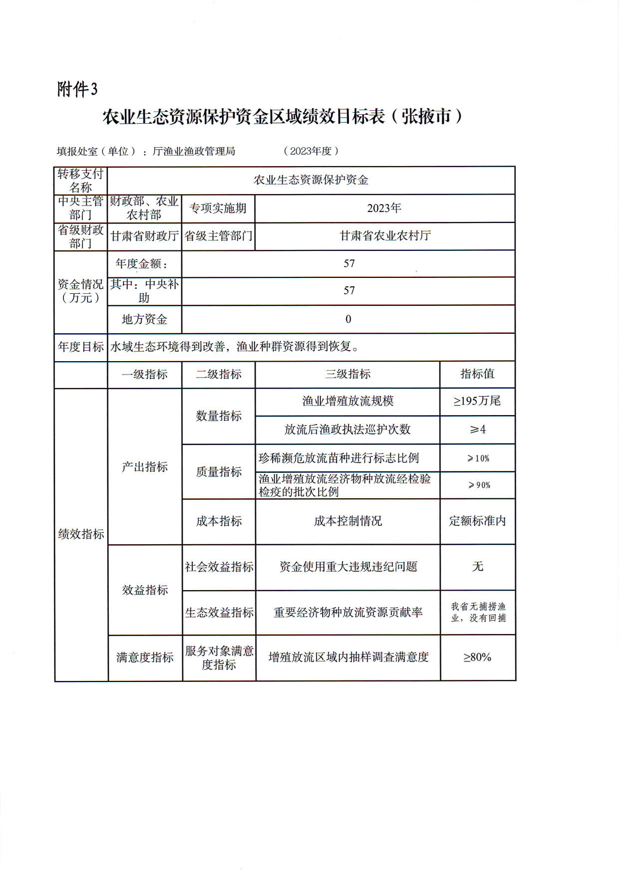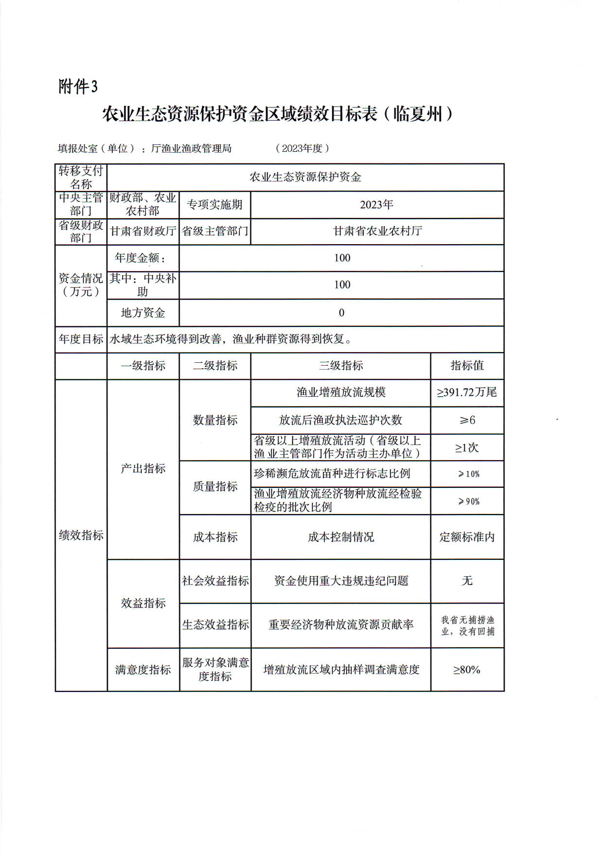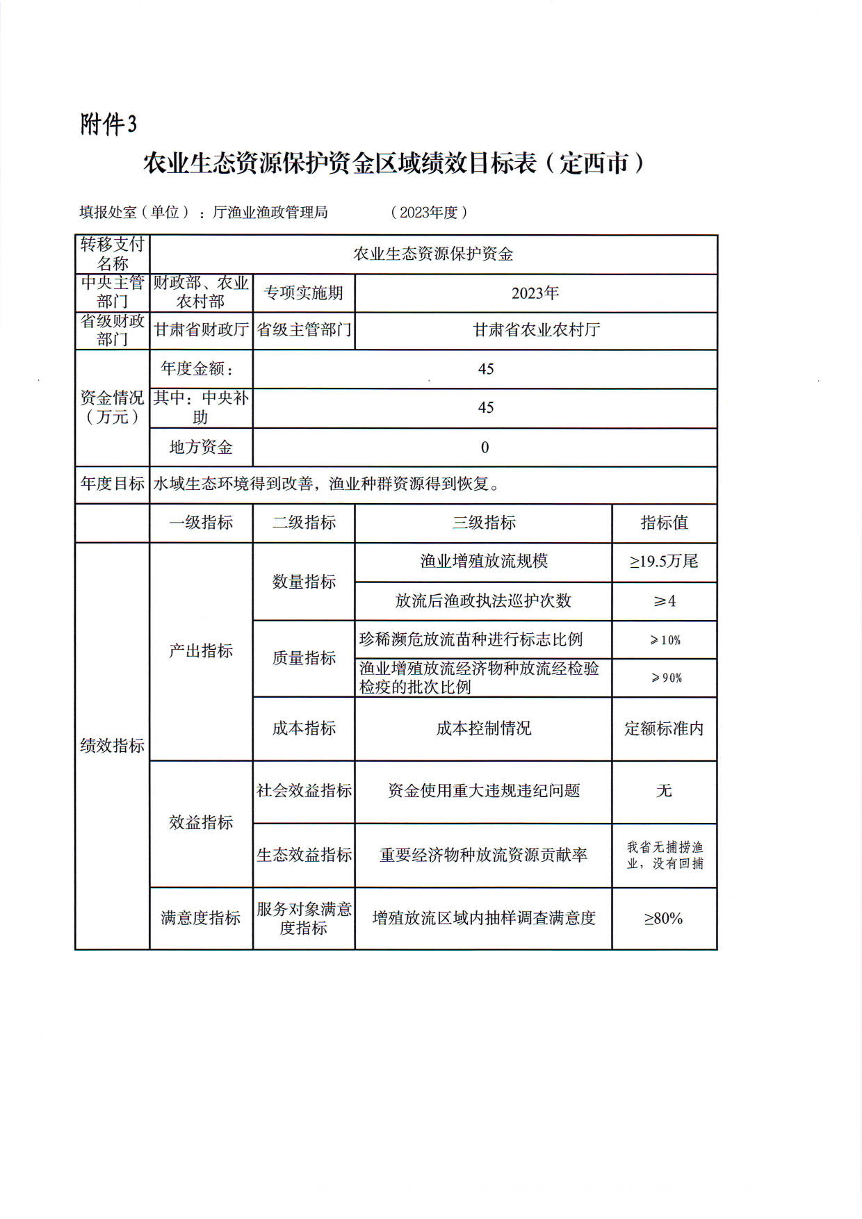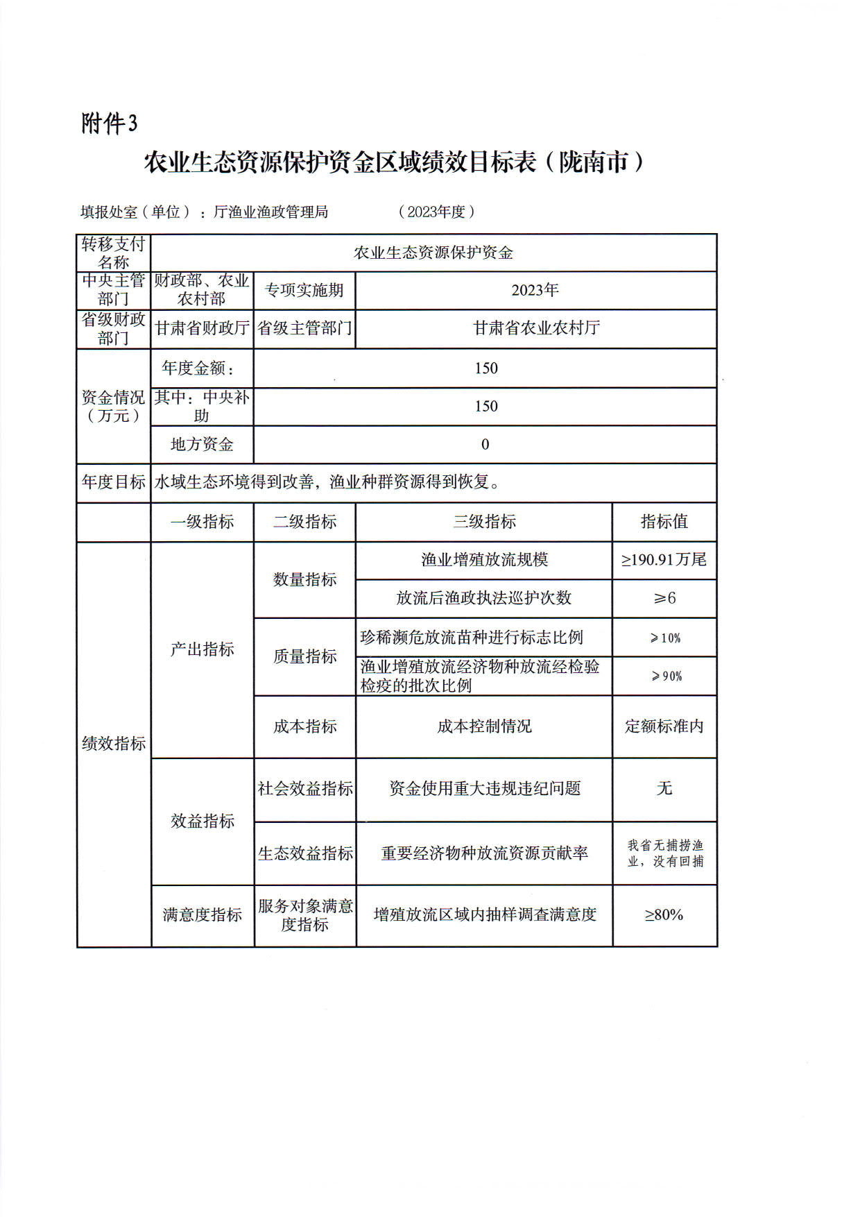 2.甘肃省2023年渔业资源增殖放流任务及资金指标分配表