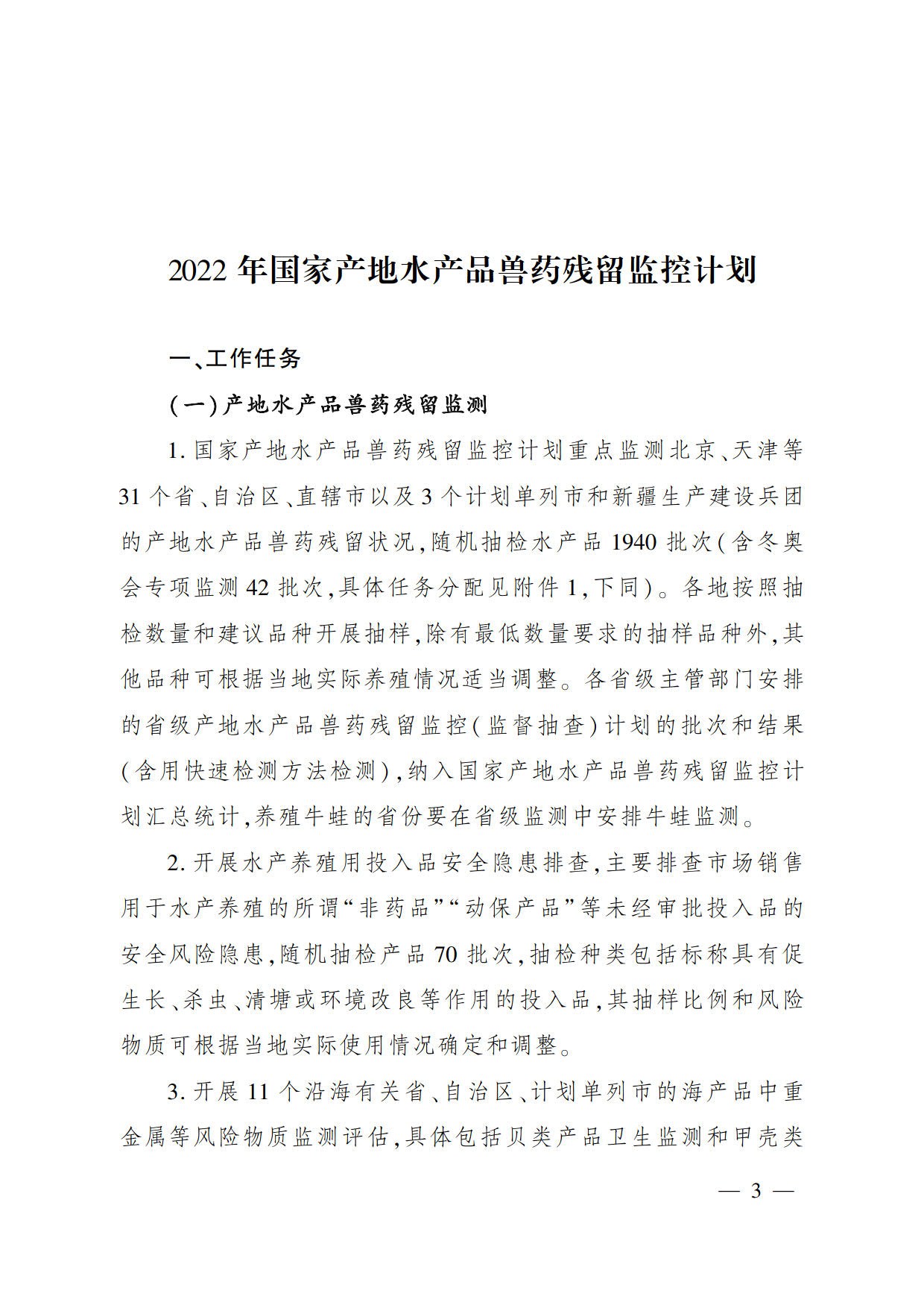 农业农村部关于印发《2022年国家产地水产品兽药残留监控计划》《2022年国家水生动物疫病监测计划》的通知