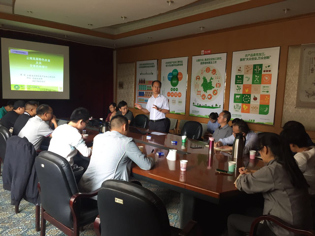 2017年9月21日,云科氢创空间组织了《三产融合,现代农业的必由之路》系列活动的第一期活动,由云南省农业科学院农产品加工研究所李宏所长以《云南高原特色农业及其发展趋势》为主题为农业科技人员、企业家、创业者们分享了云南高原特色农业的历史、定位、特色、特点、优势与发展趋势。