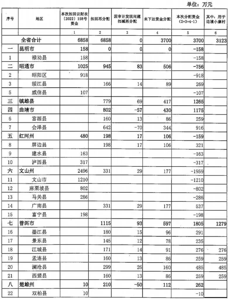 今年以来,我省财政衔接推进乡村振兴补助资金支出进度总体较去年有较大提升,但部分县(市、区)财政衔接推进乡村振兴补助资金支出进度不理想,未达资金支出序时进度,没有充分体现财政资金使用“准”、“实”、“好”的要求,影响了资金效益的发挥。为此,根据《云南省财政厅等六部门关于加强中央和省级财政衔接推进乡村振兴补助资金使用管理的实施意见》(云财规〔 2022〕23号)关于“在年度执行中,省级将根据各地支出进度实施奖惩考核,适当扣减低于序时进度地区资金,调整安排至高于序时进度地区”的规定,为切实提高资金使用效益,做好绩效目标跟踪情况在预算执行过程中的运用,树立资金支出越快、绩效管理越好、支持力度越大的鲜明导向,现对2022年省级财政衔接推进乡村振兴补助资金予以调整。