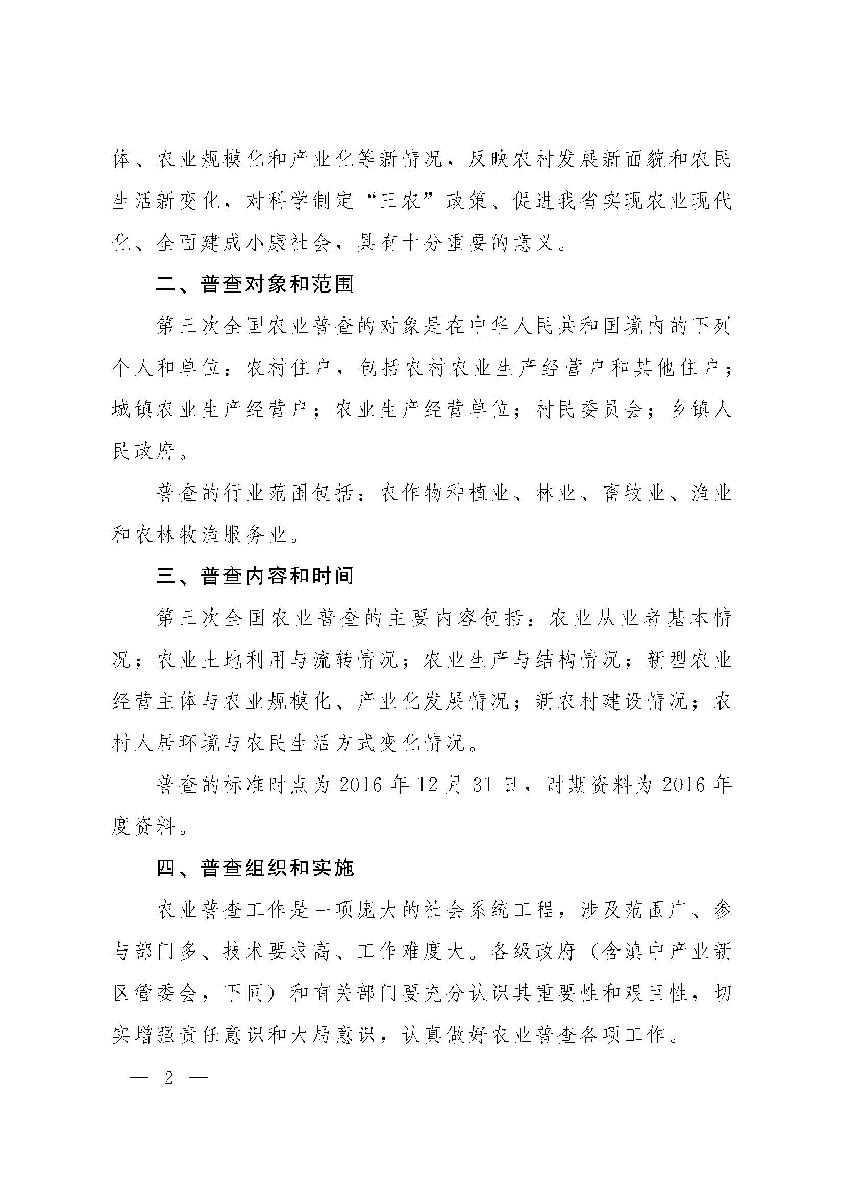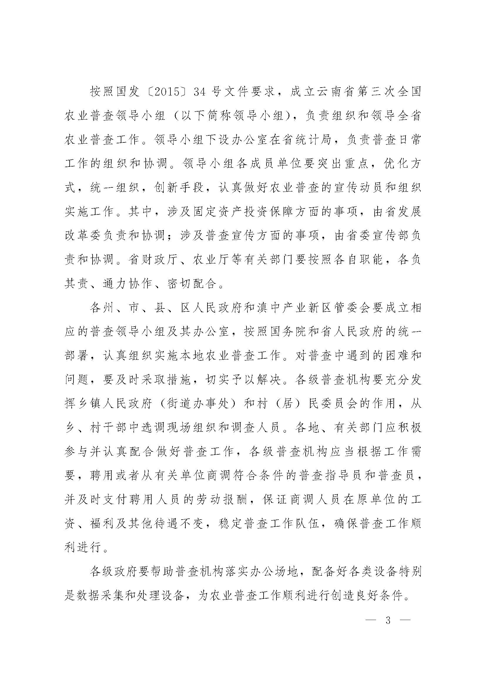 云南省人民政府关于在全省开展第三次全国农业普查的通知