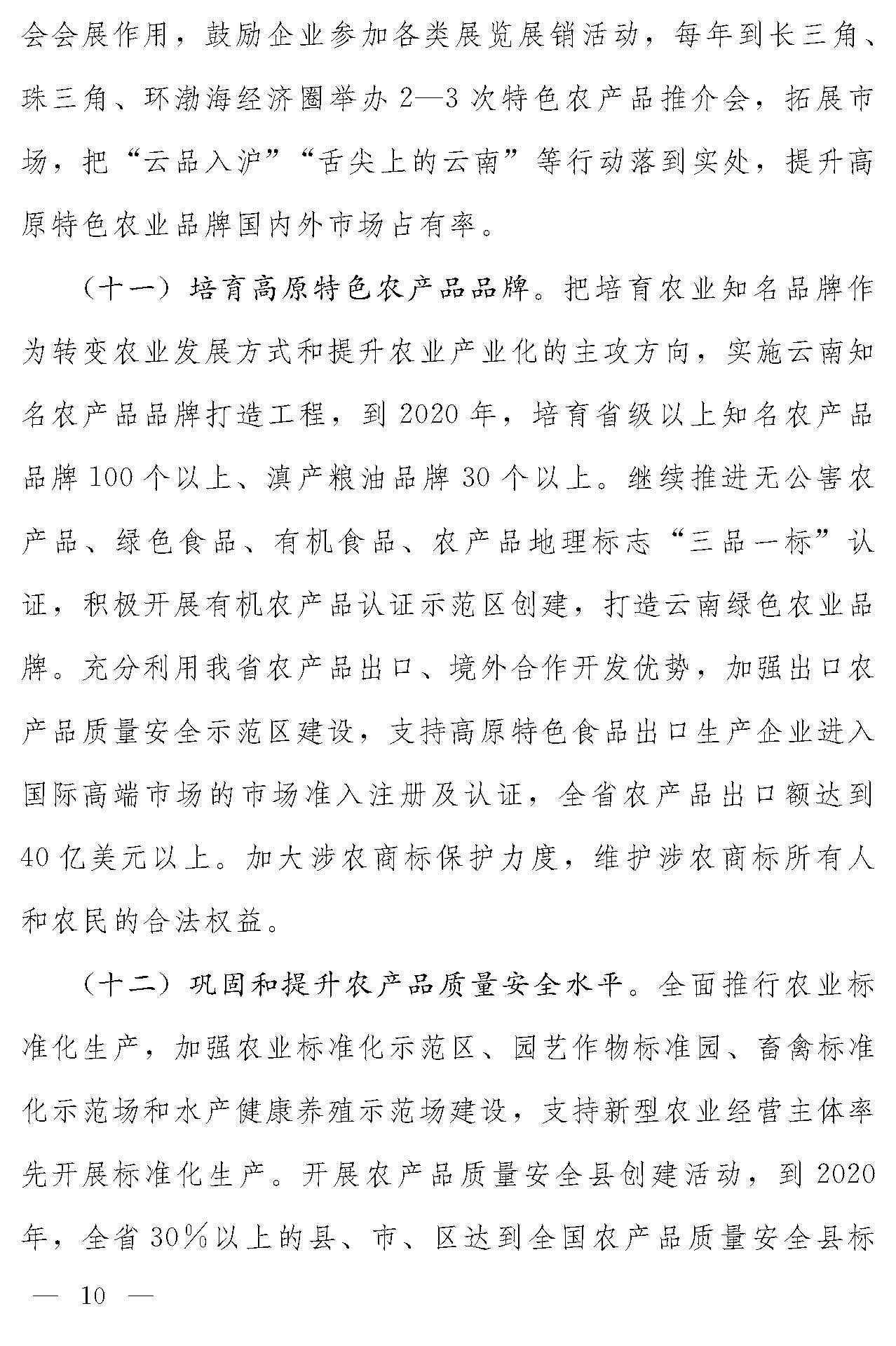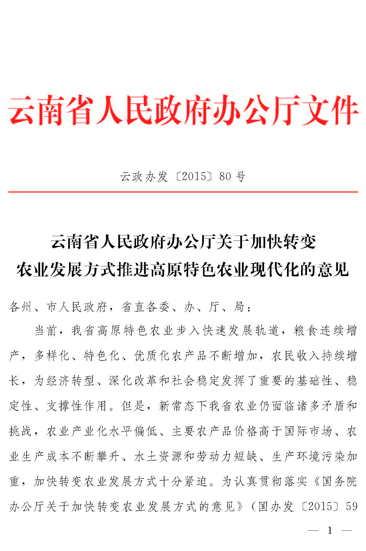 云南省人民政府办公厅关于加快转变农业发展方式推进高原特色农业现代化的意见