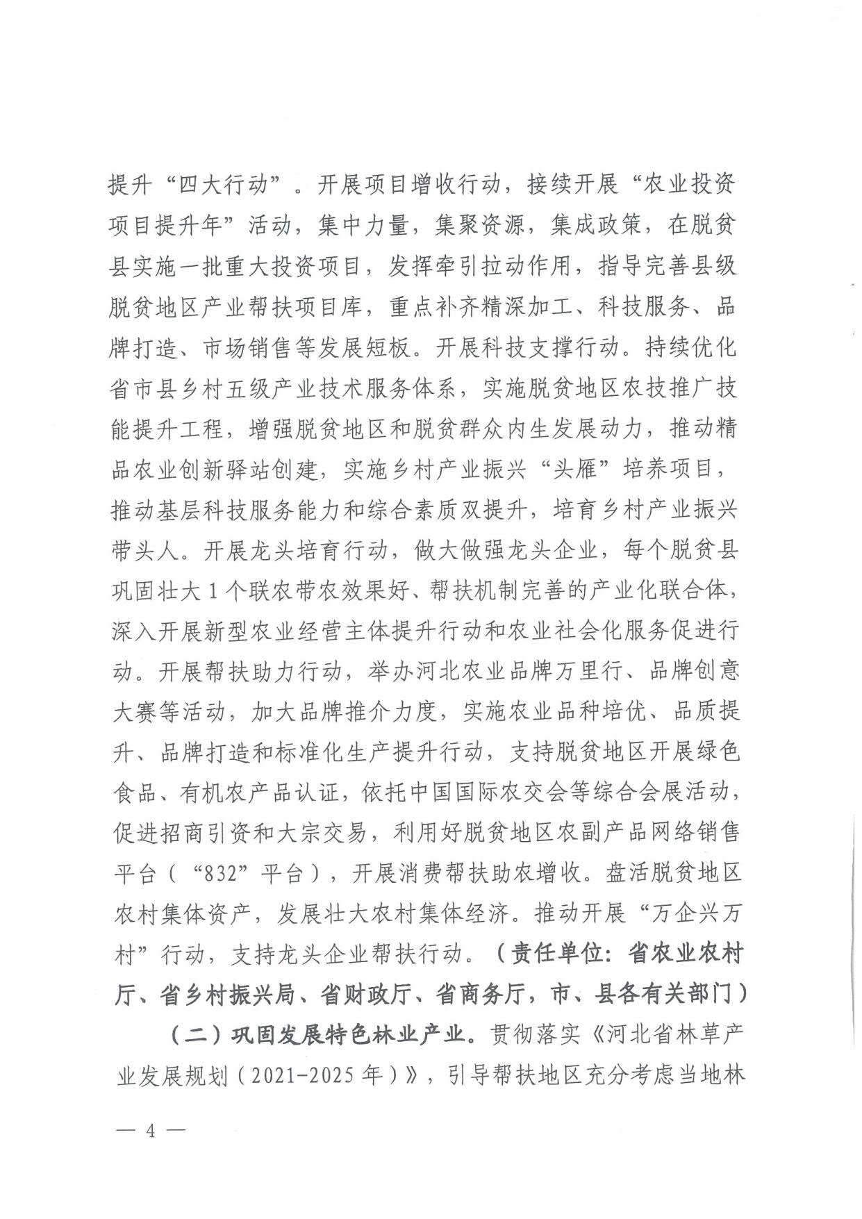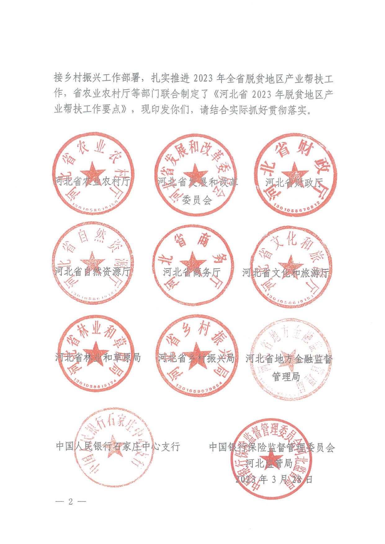 各市(含定州、辛集市)、62个脱贫县(市、区 )农业农村、发展改革、财政、自然资源、商务、文旅、乡村振兴、地方金融监管局、林草主管部门,各银保监分局,中国人民银行雄安新区营业管理部、河北省各市中心支行,雄安新区公共服务局:
