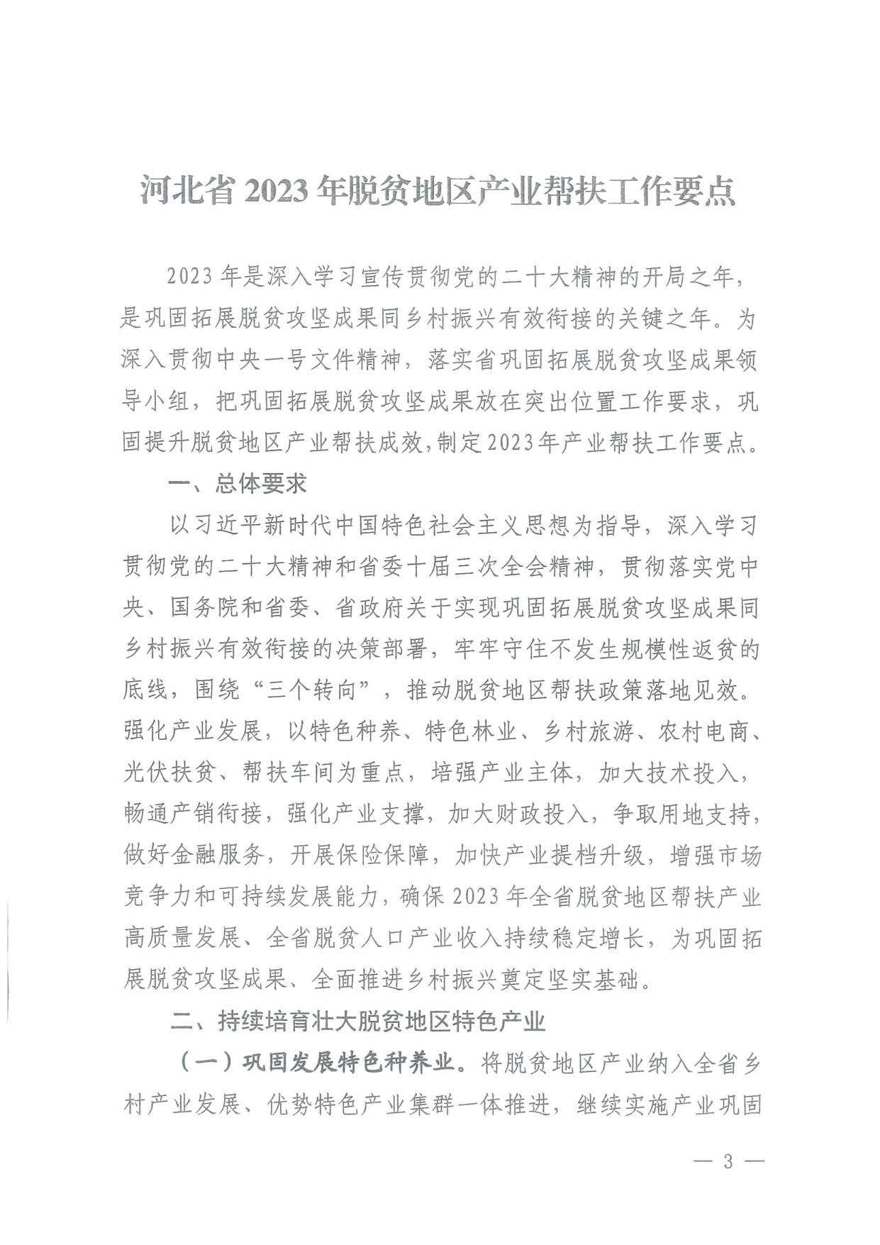 河北省农业农村厅等部门关于印发《河北省2023年脱贫地区产业帮扶工作要点》的通知