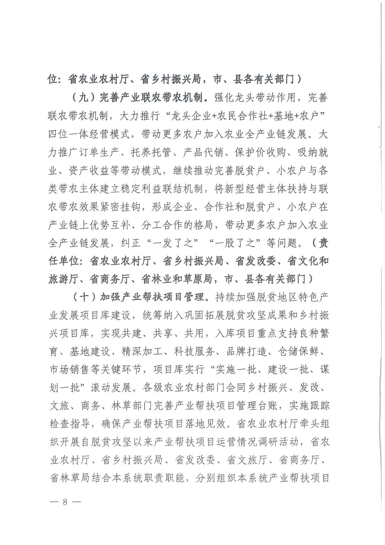 为贯彻落实中央、省委省政府巩固拓展脱贫攻坚成果,有效衔接乡村振兴工作部署,扎实推进2023年全省脱贫地区产业帮扶工作,省农业农村厅等部门联合制定了《河北省2023年脱贫地区产业帮扶工作要点》,现印发你们,请结合实际抓好贯彻落实。