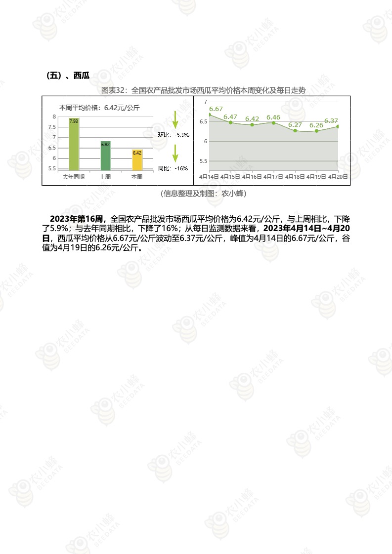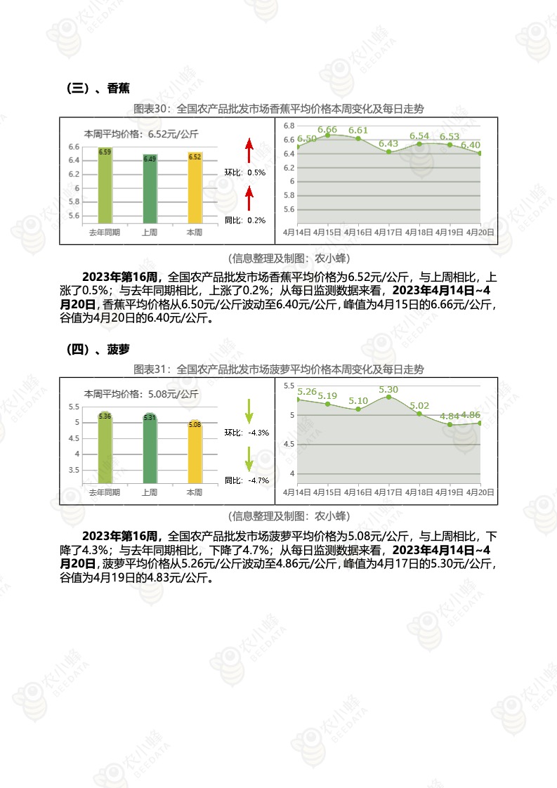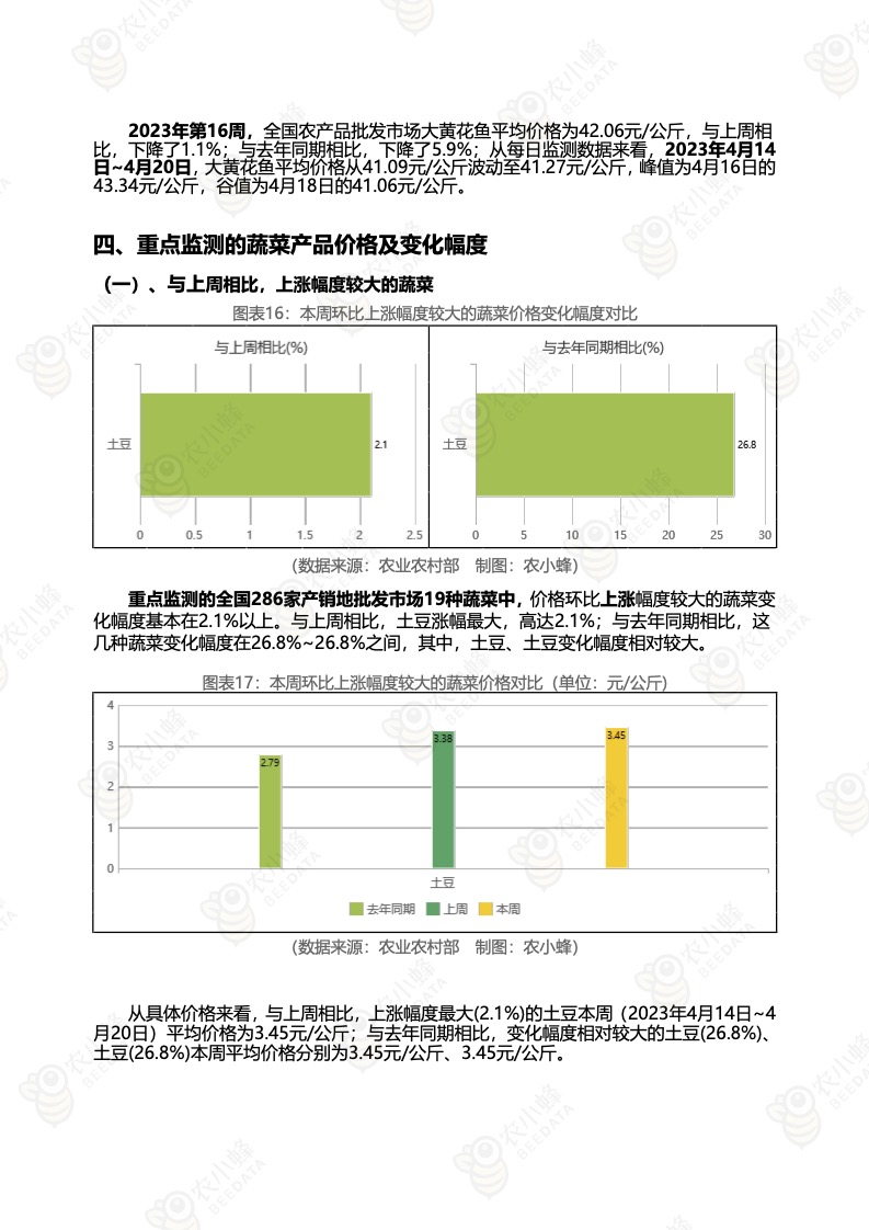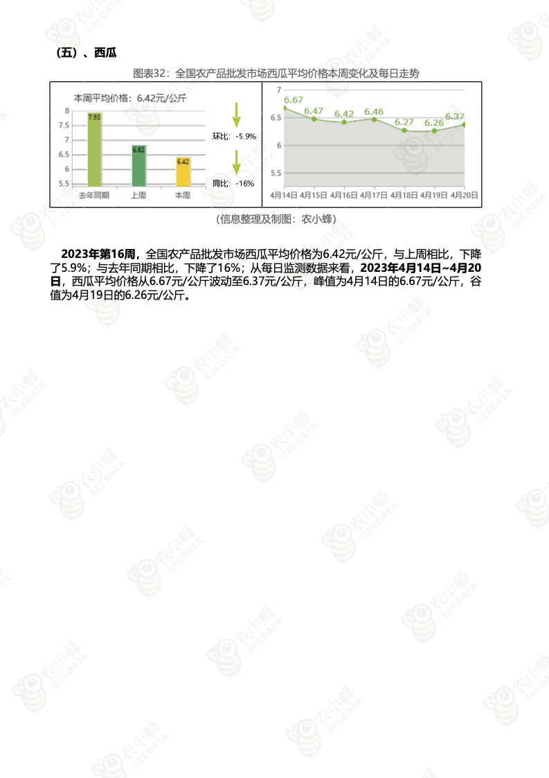《农小蜂:全国农产品批发市场价格行情监测周报(2023年第16周)》
