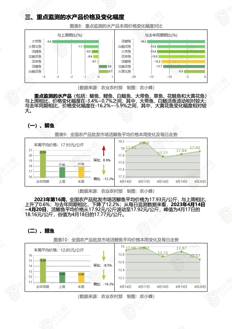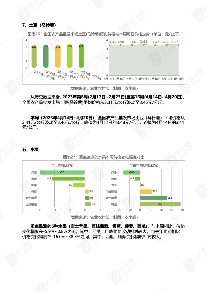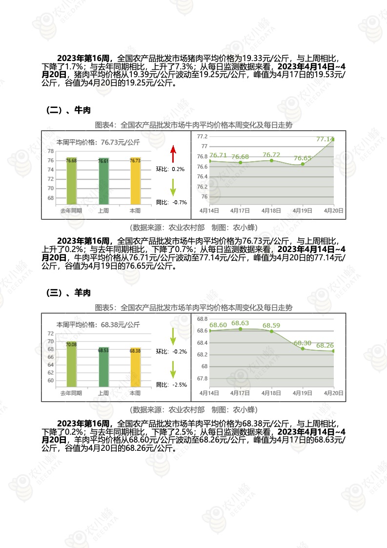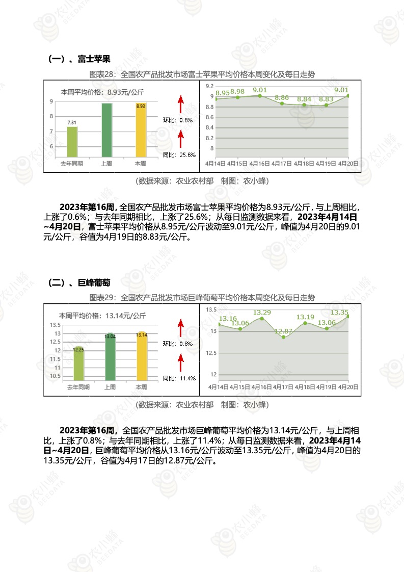 《农小蜂:全国农产品批发市场价格行情监测周报(2023年第16周)》