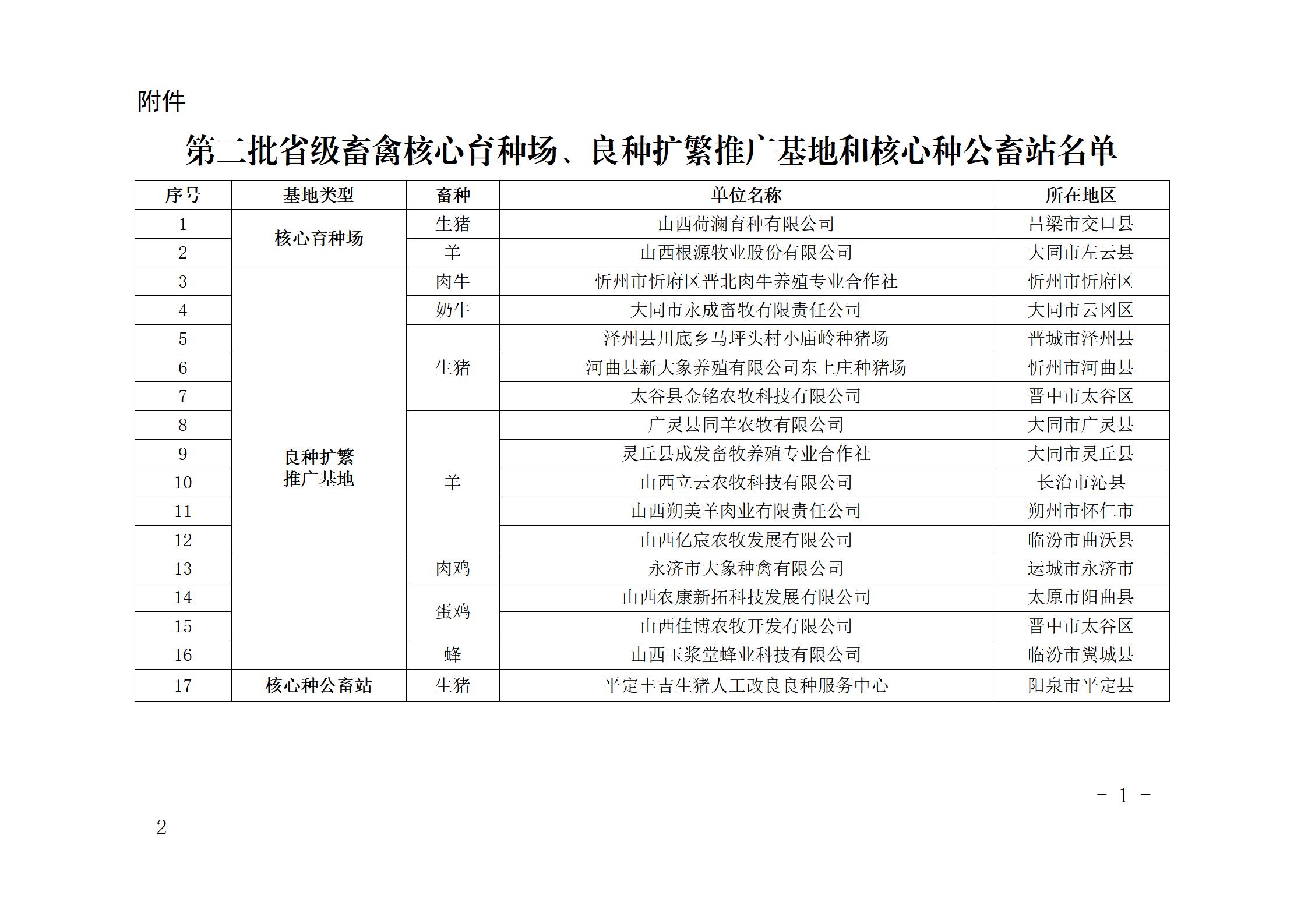 山西省农业农村厅关于确定第二批省级畜禽核心育种场、 良种扩繁推广基地和核心种公畜站的通知