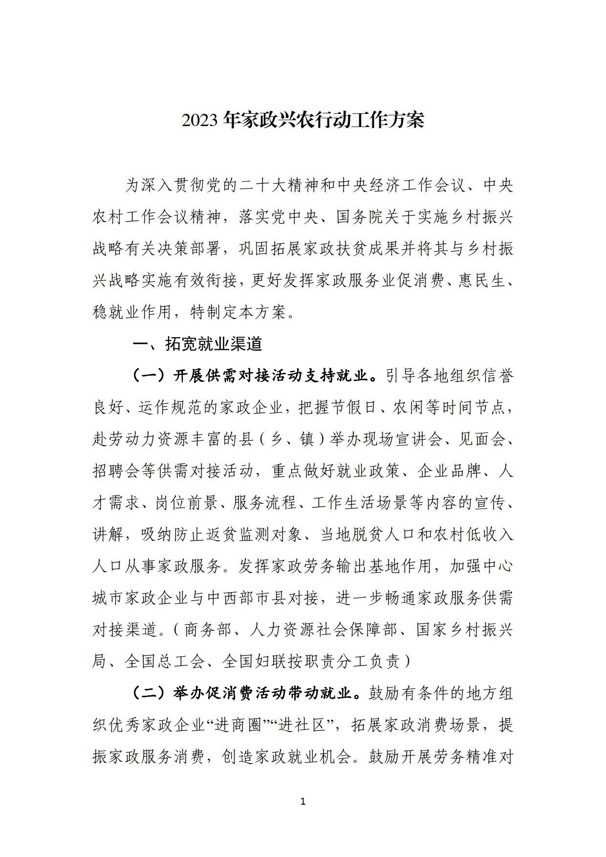商务部等16部门关于印发《2023年家政兴农行动工作方案》的通知