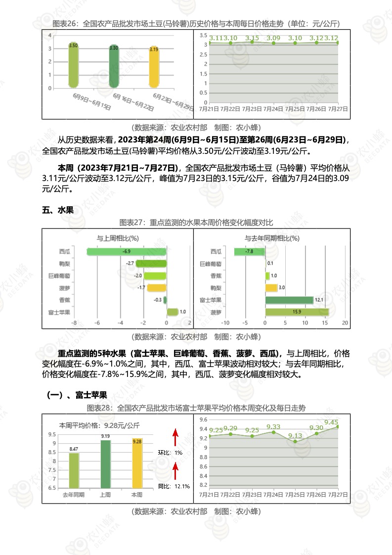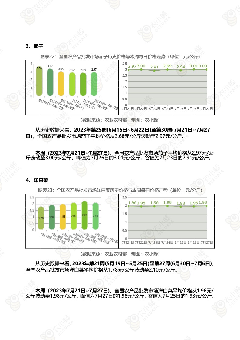 《农小蜂:全国农产品批发市场价格行情监测周报(2023年第30周)》