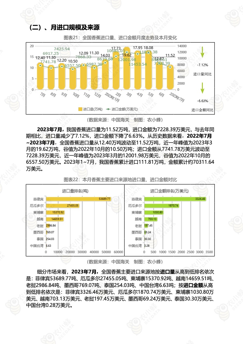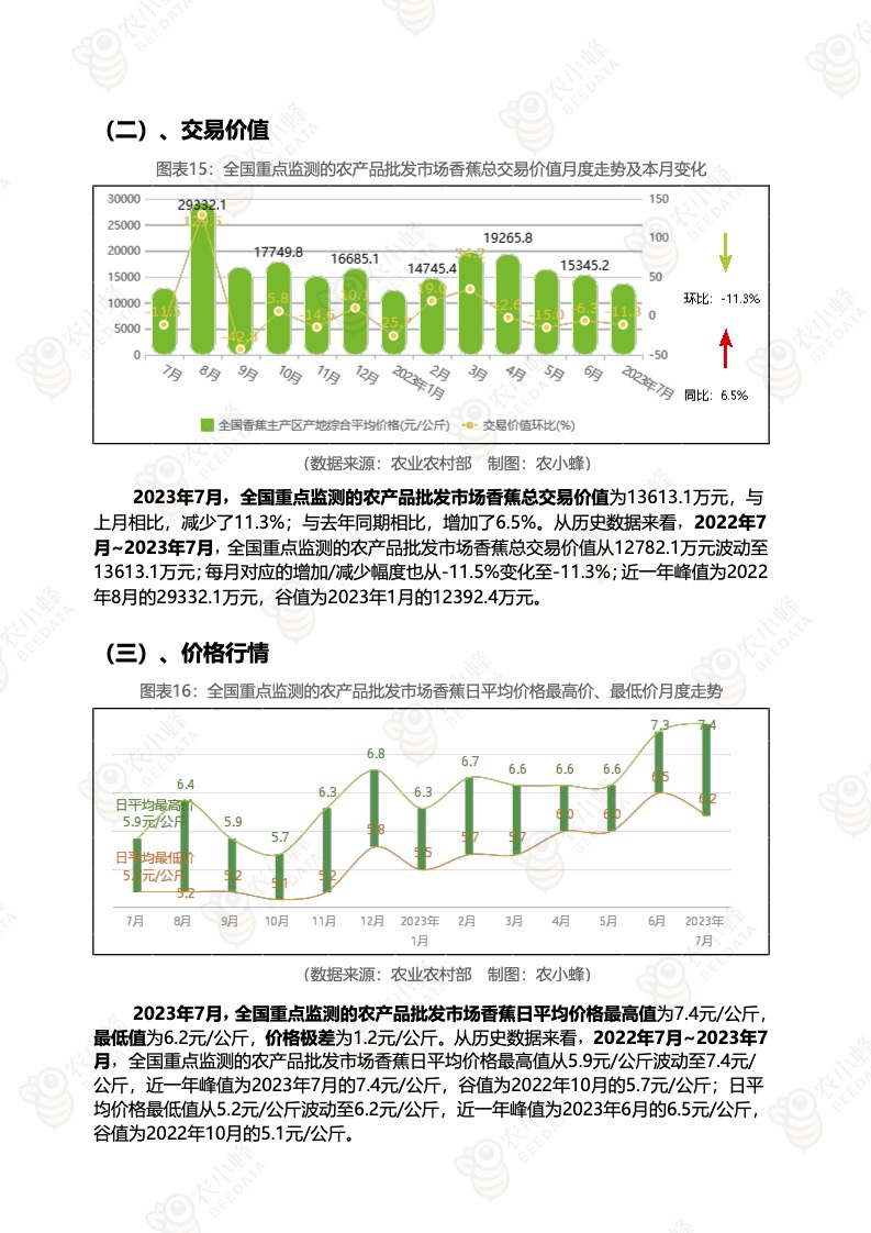 《农小蜂:中国香蕉市场动态监测(2023年7月)》