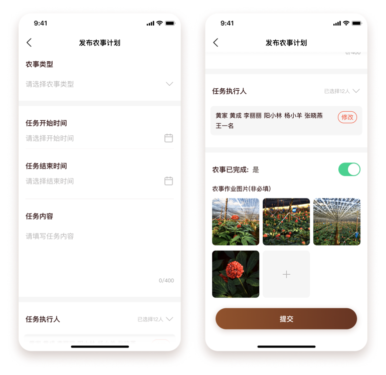 农事计划支持标记该农事已完成,辅助快速补录农事任务