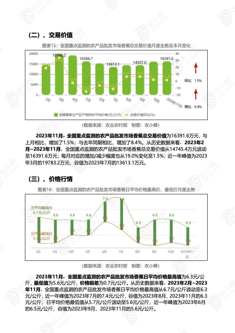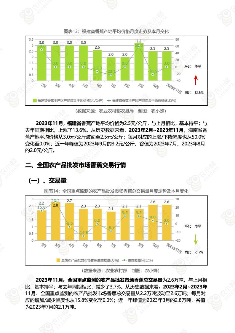 《农小蜂:中国香蕉市场动态监测(2023年11月)》