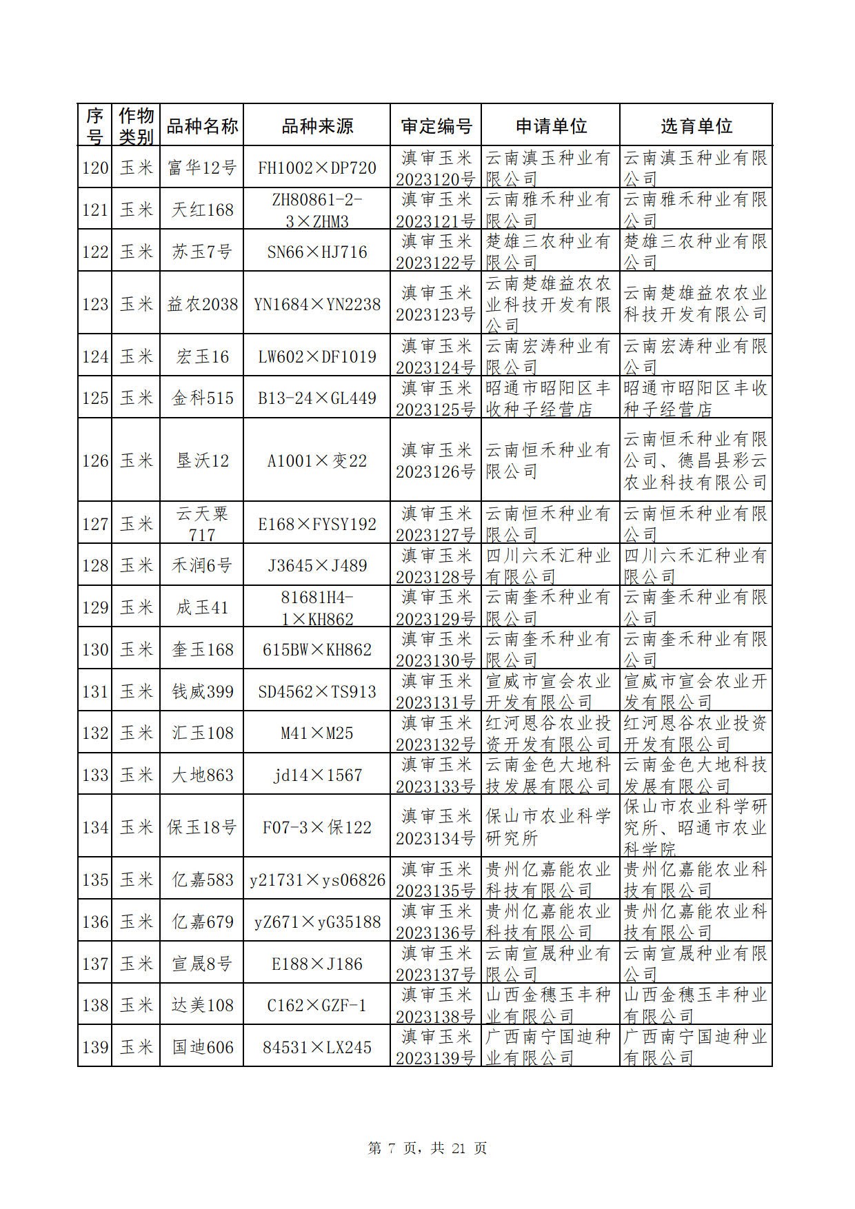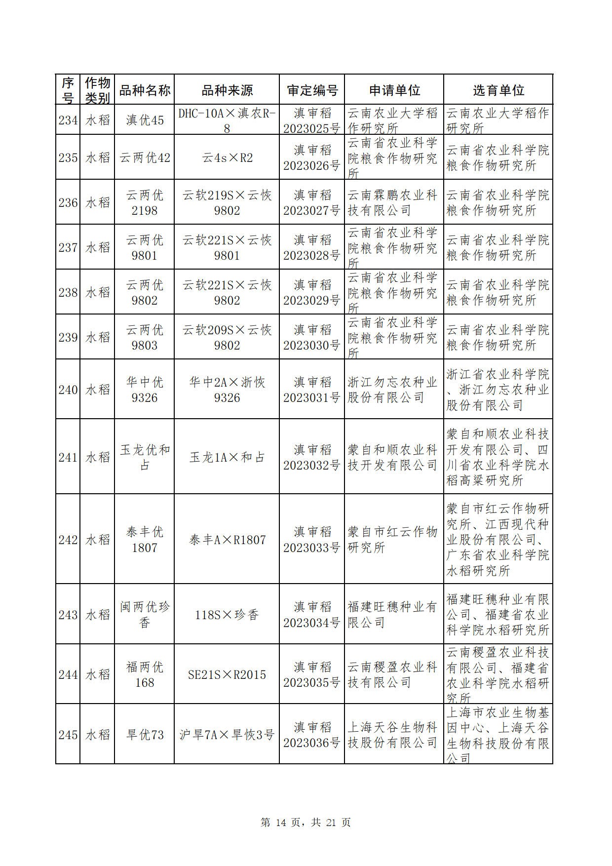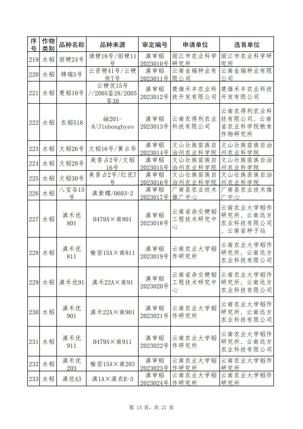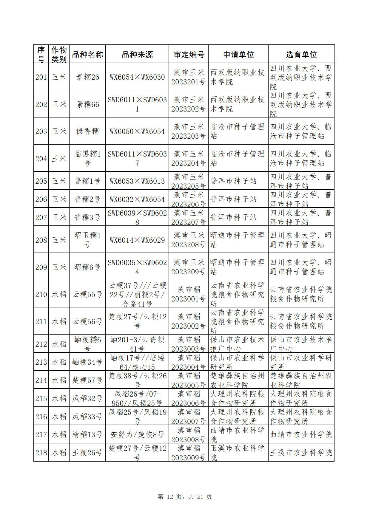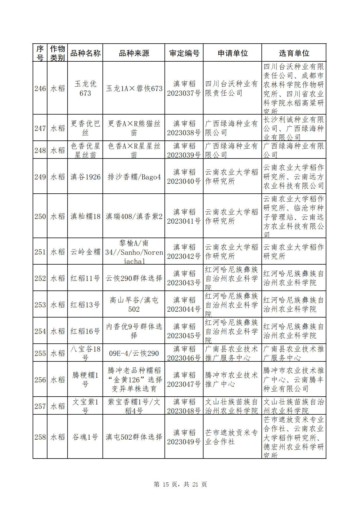 【查看政策原文:云南省农业农村厅关于2023年云南省审定通过品种的通告】