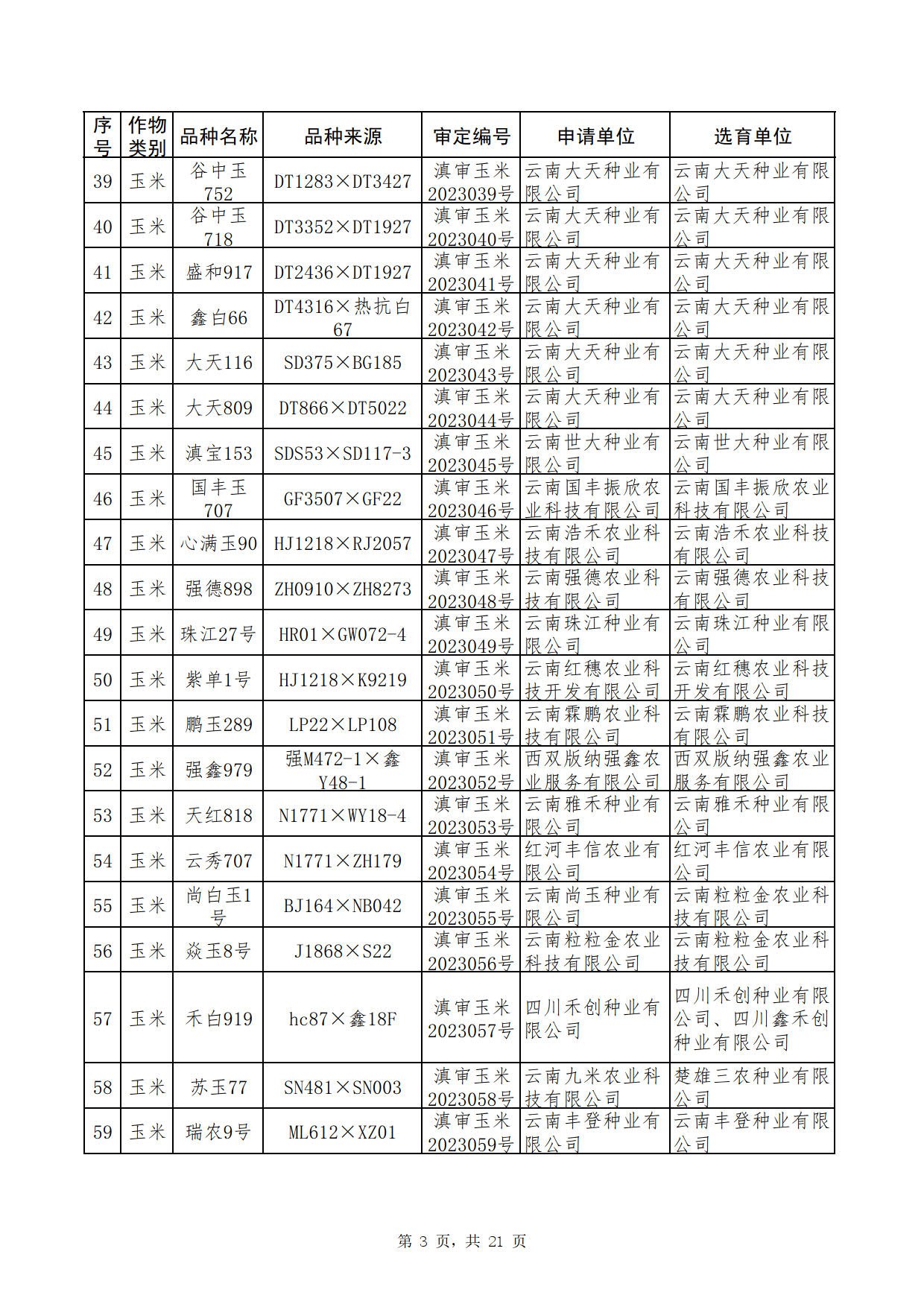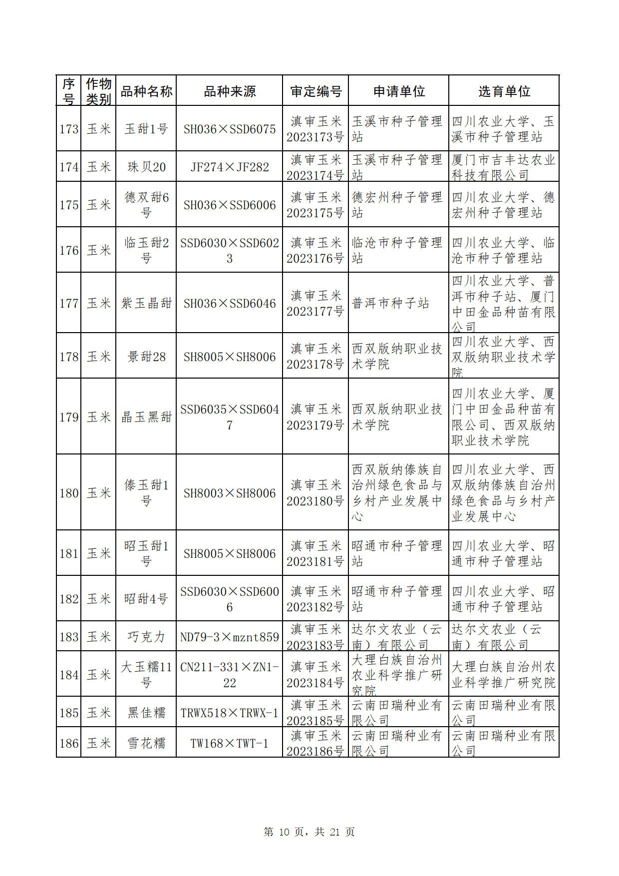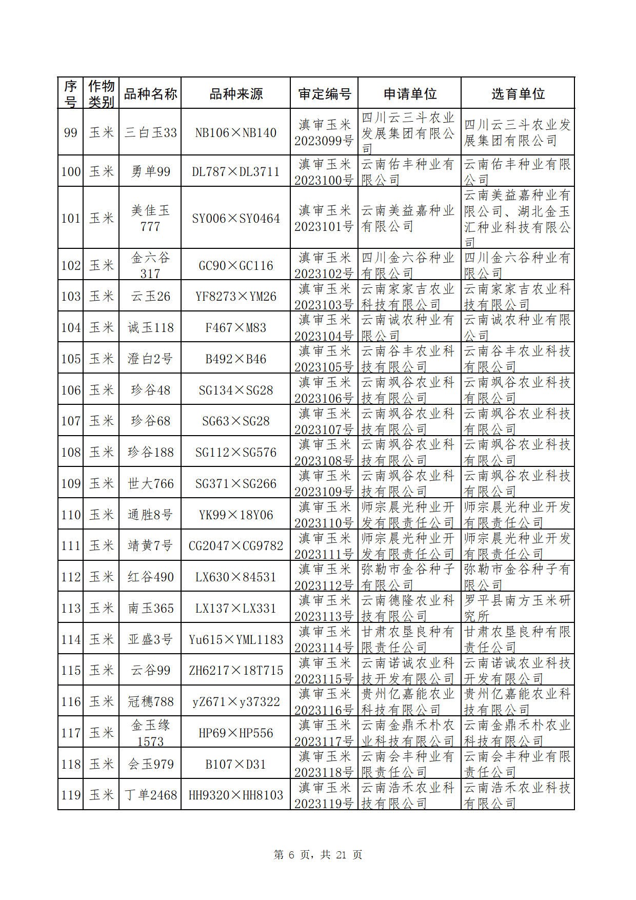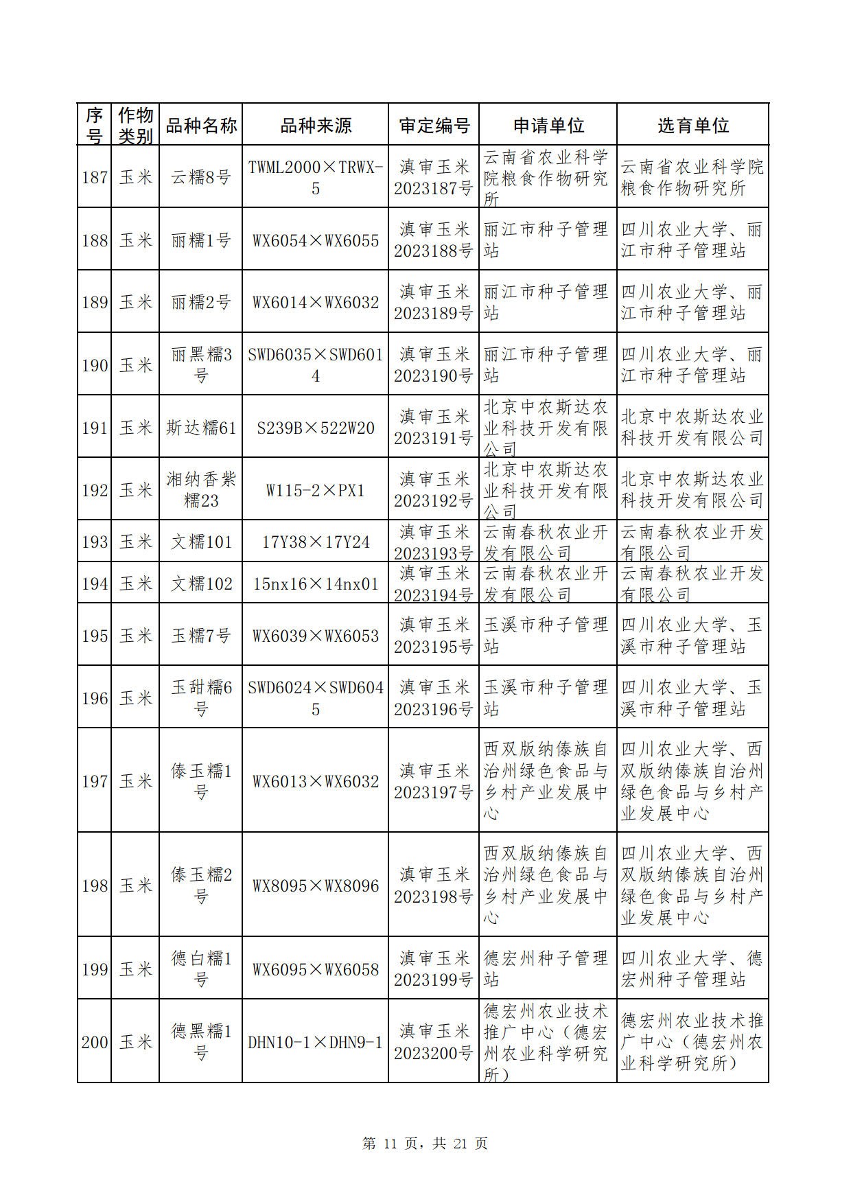 【查看政策原文:云南省农业农村厅关于2023年云南省审定通过品种的通告】