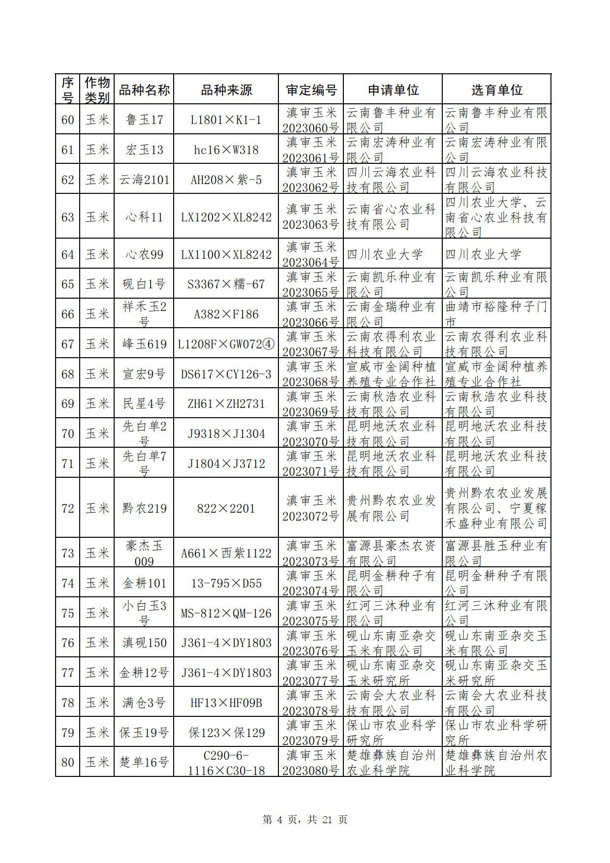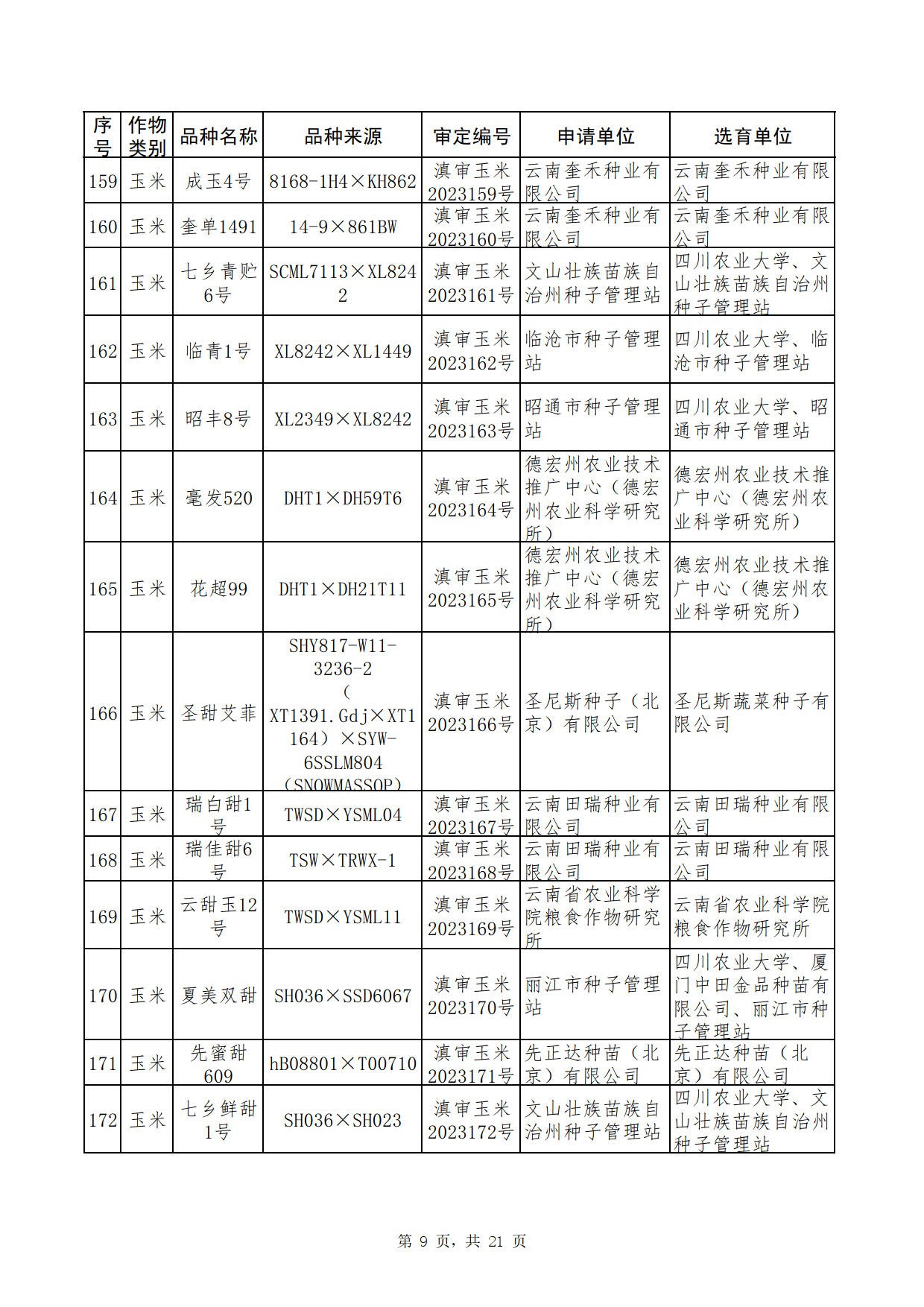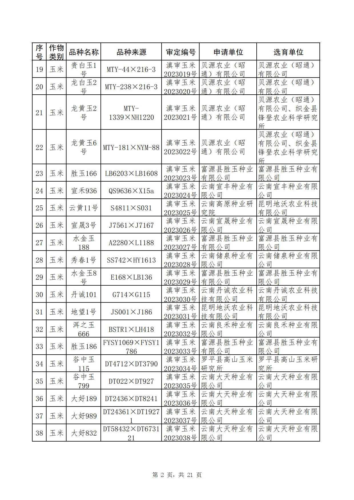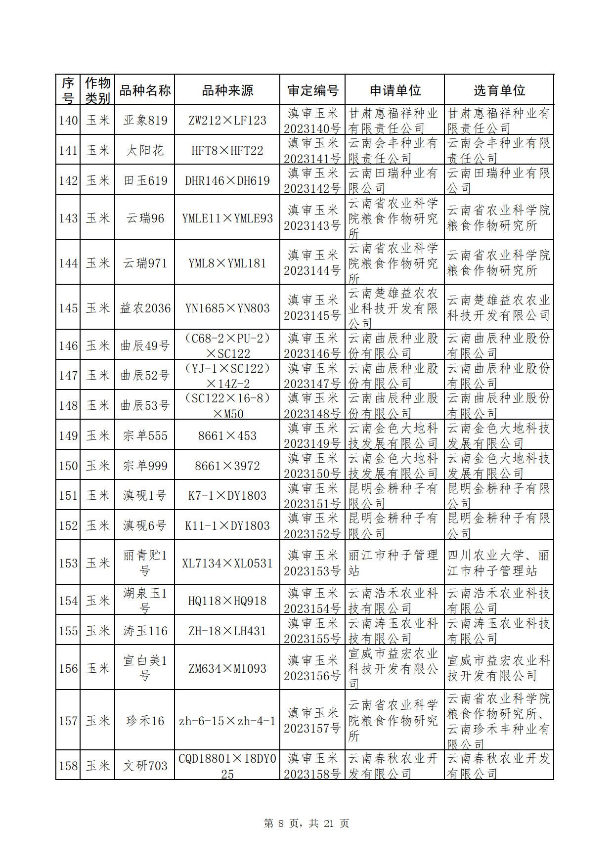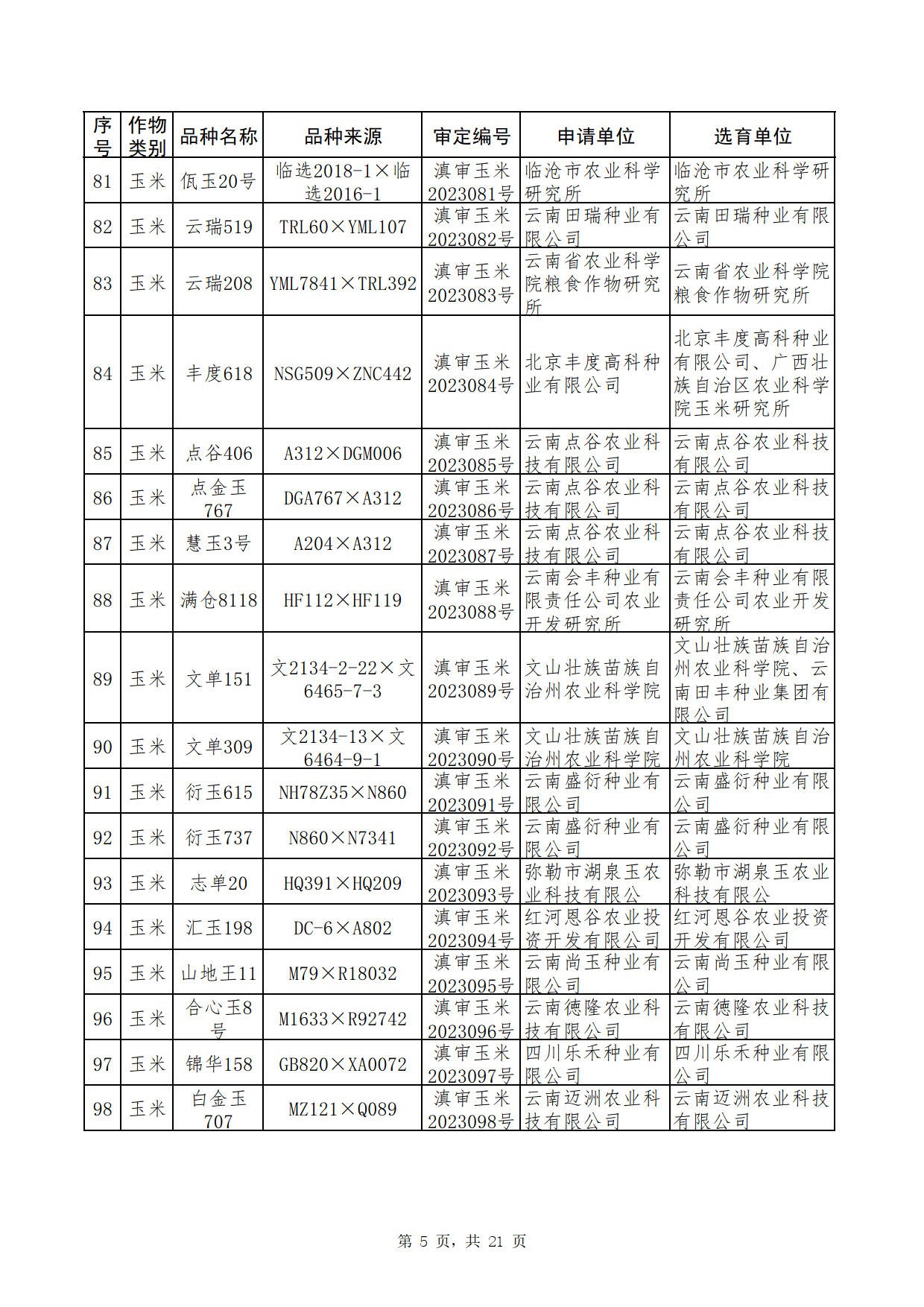 【查看政策原文:云南省农业农村厅关于2023年云南省审定通过品种的通告】