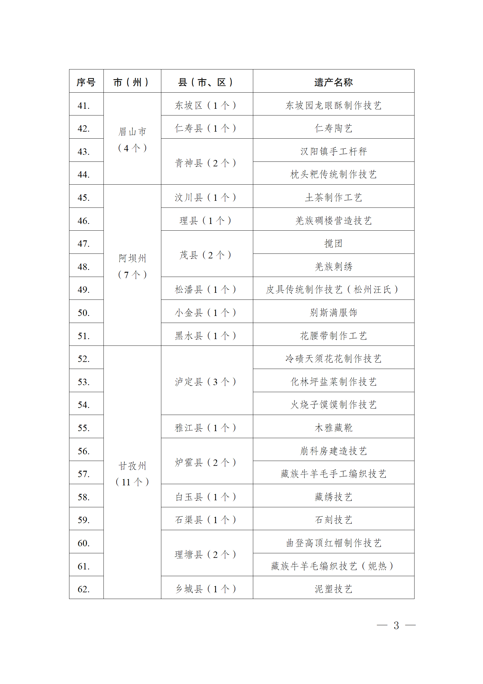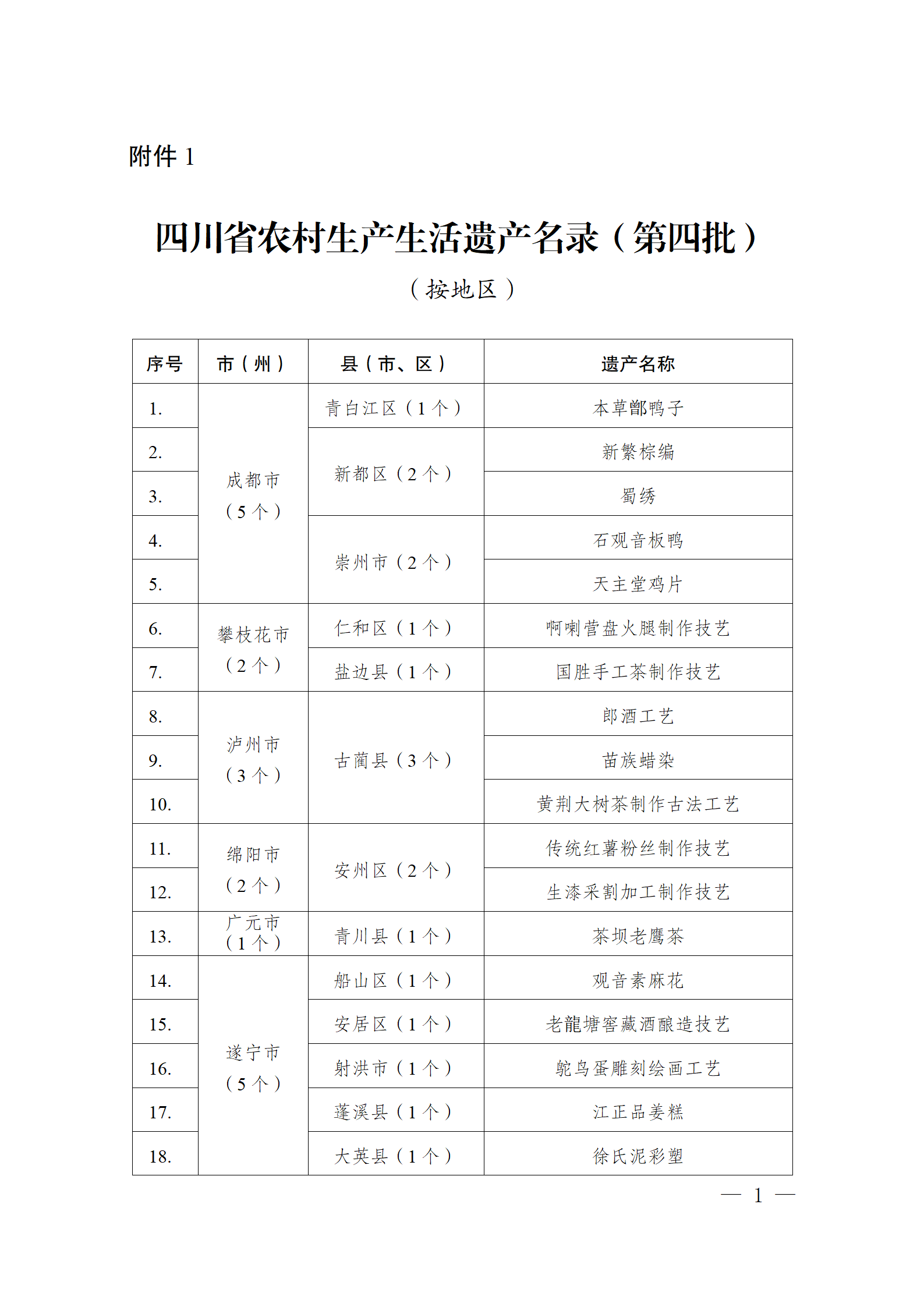 1.四川省农村生产生活遗产名录(第四批)(按地区)