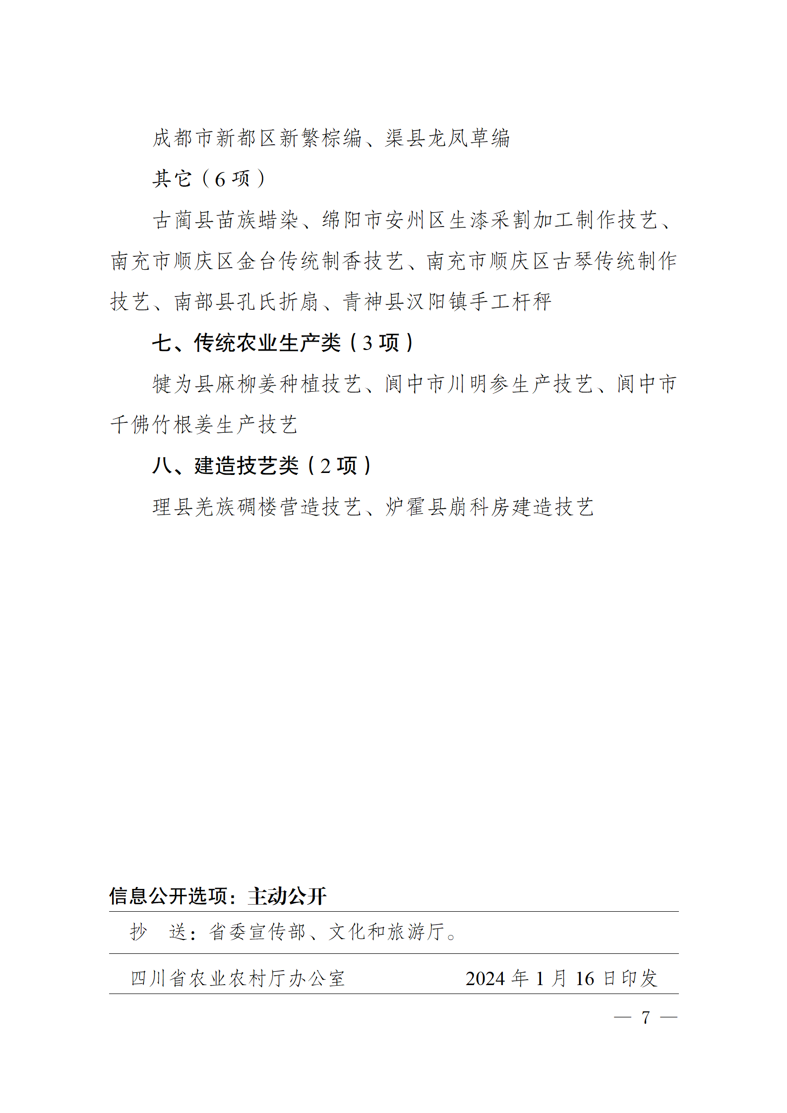 四川省农业农村厅关于公布《四川省农村生产生活遗产名录(第四批)》的通知