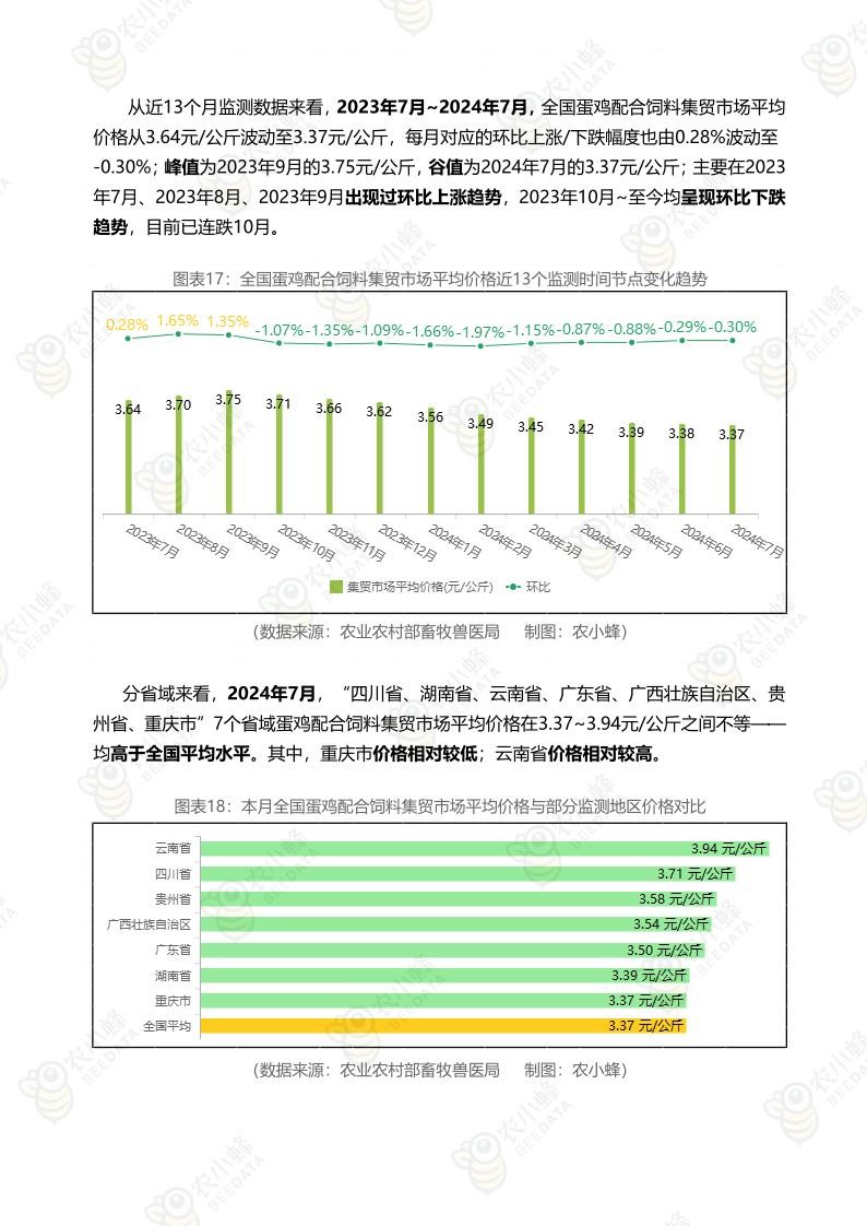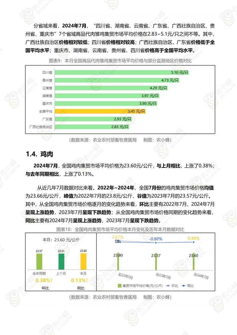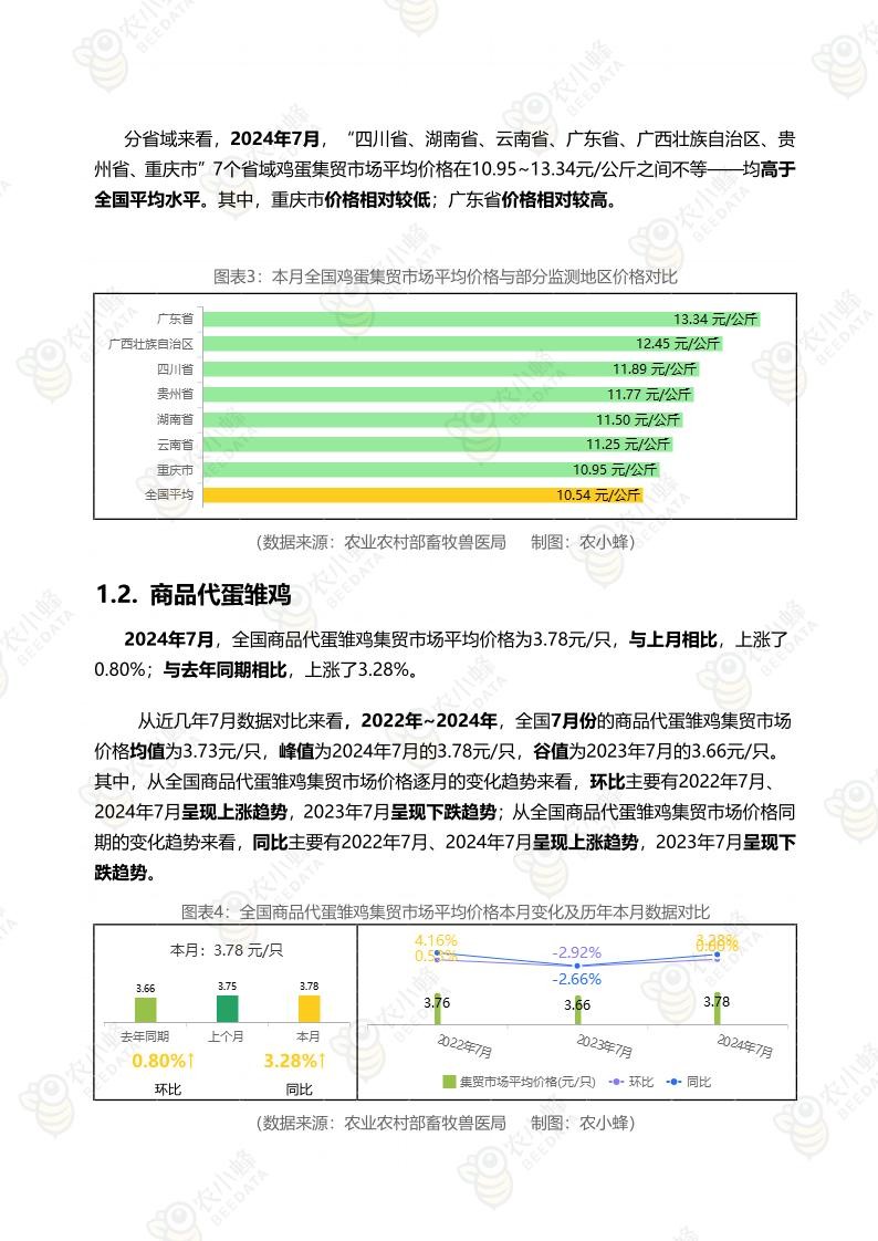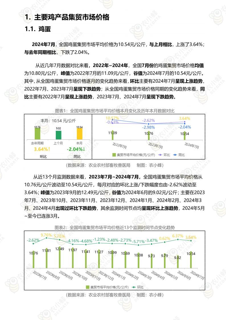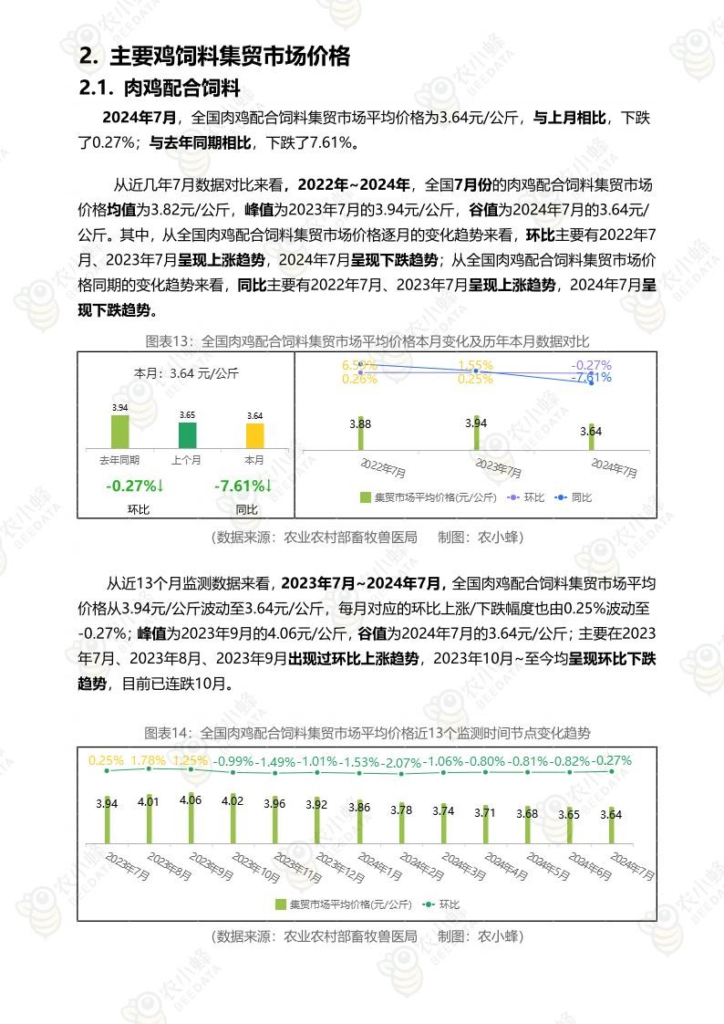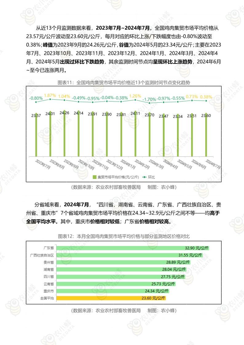 《农小蜂:全国主要鸡产品及饲料集贸市场价格监测月报(2024年7月)》