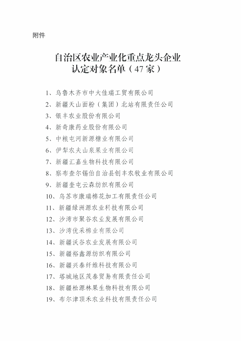 新疆维吾尔自治区农业农村厅关于2024年自治区农业产业化重点龙头企业名单的公示