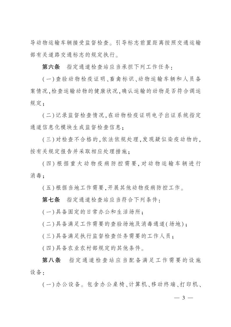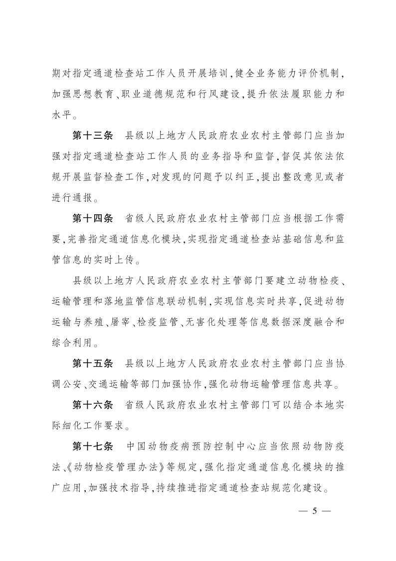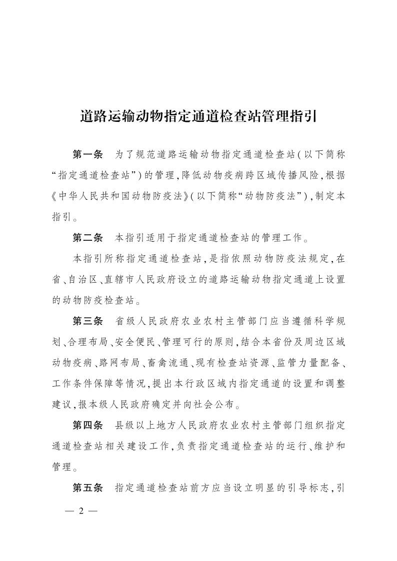 【查看政策原文:农业农村部关于印发《道路运输动物指定通道检查站管理指引》的通知】