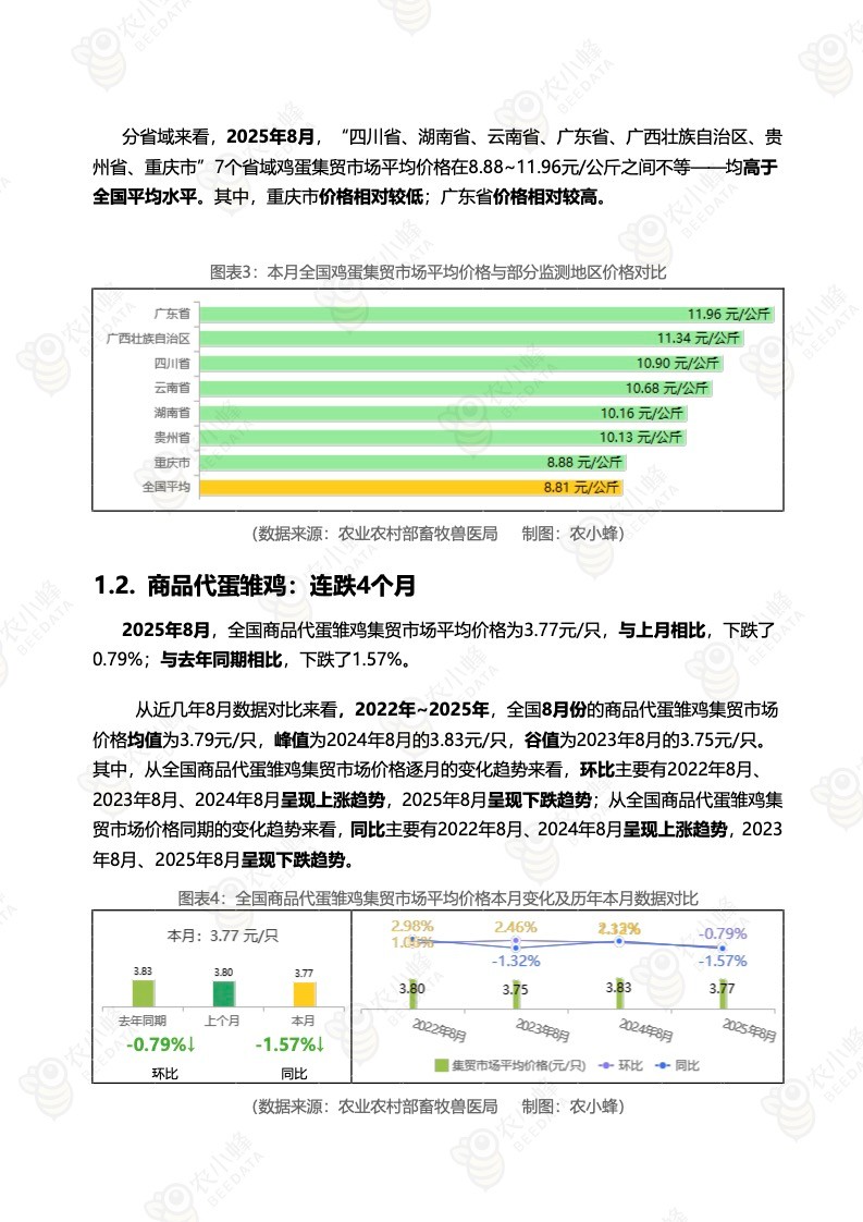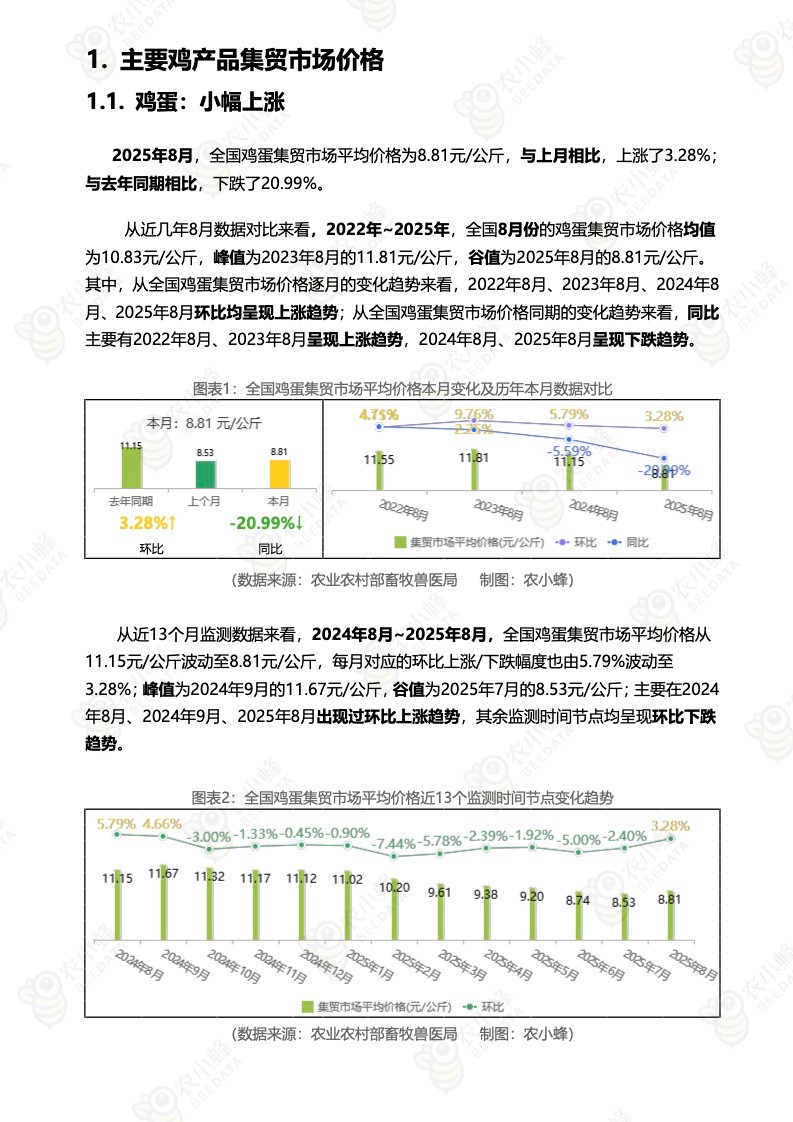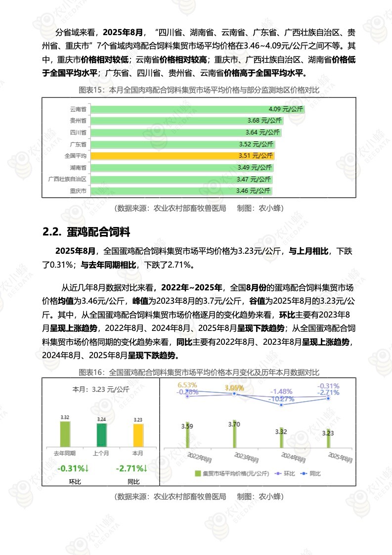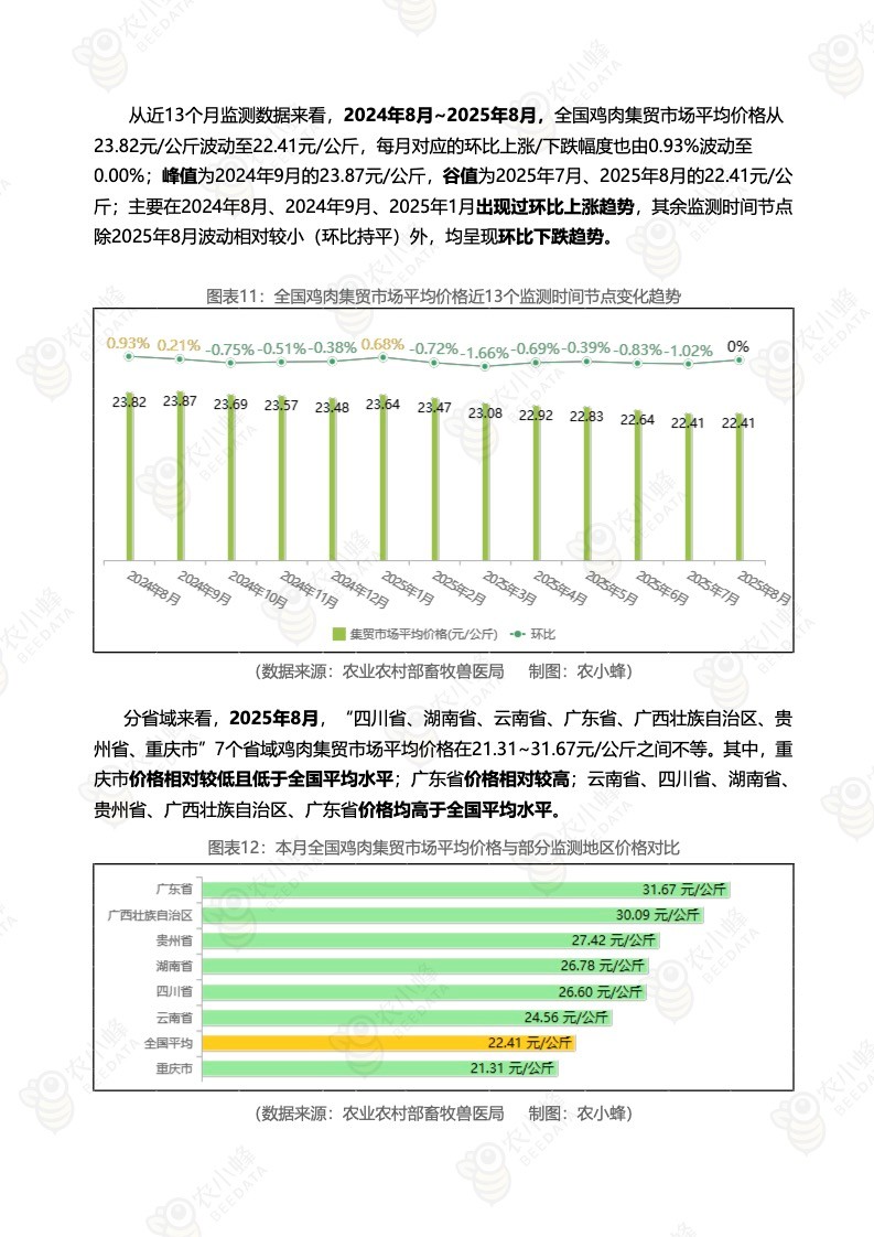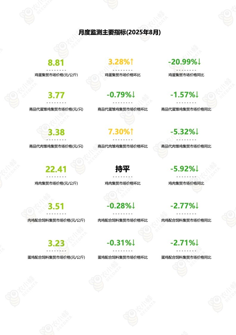 《农小蜂:全国主要鸡产品及饲料集贸市场价格监测月报(2025年8月)》