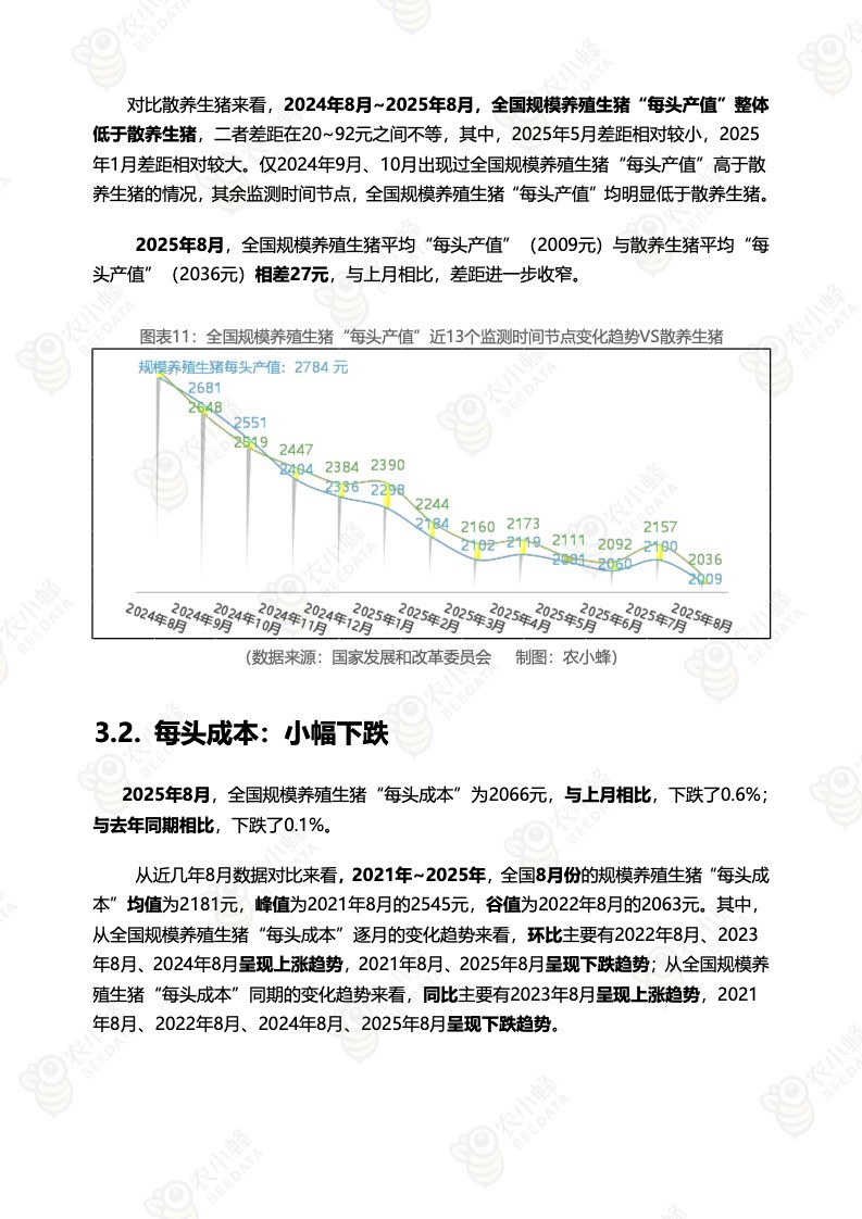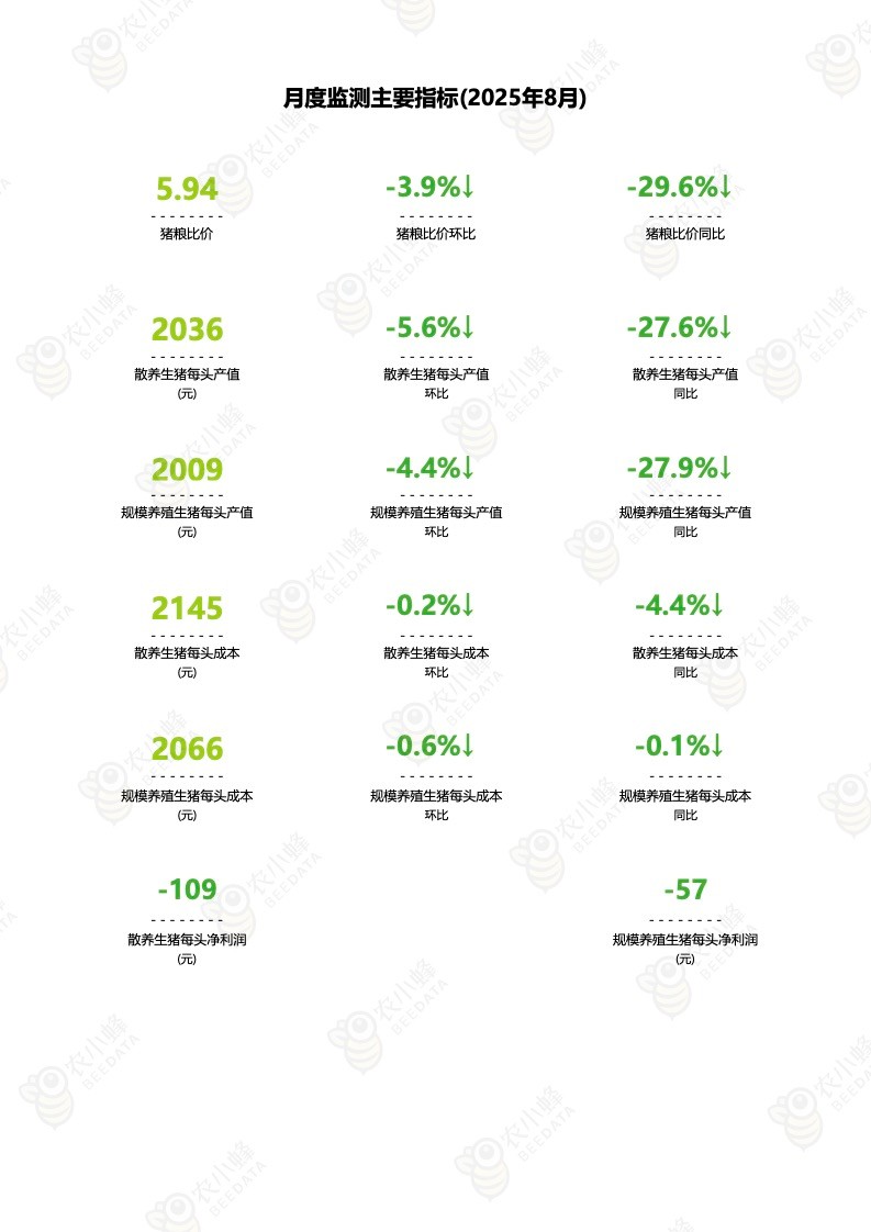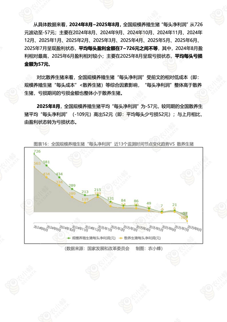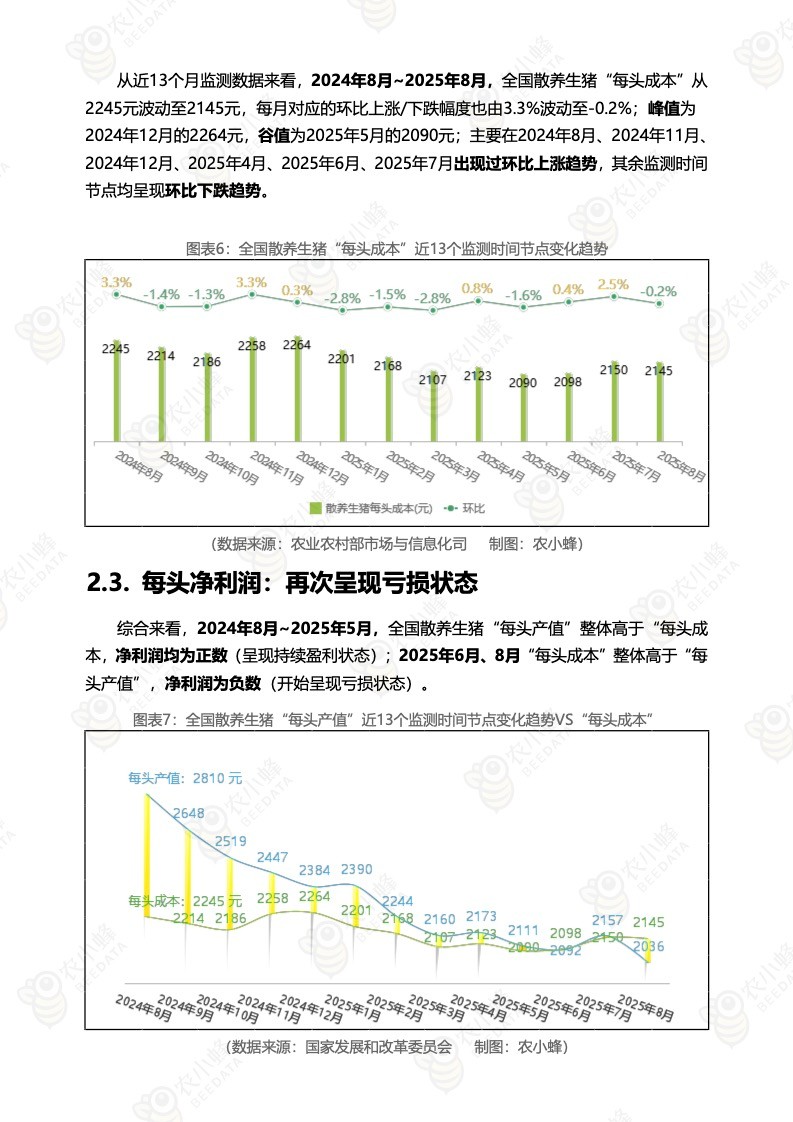 《农小蜂:全国生猪成本收益监测月报(2025年8月)》