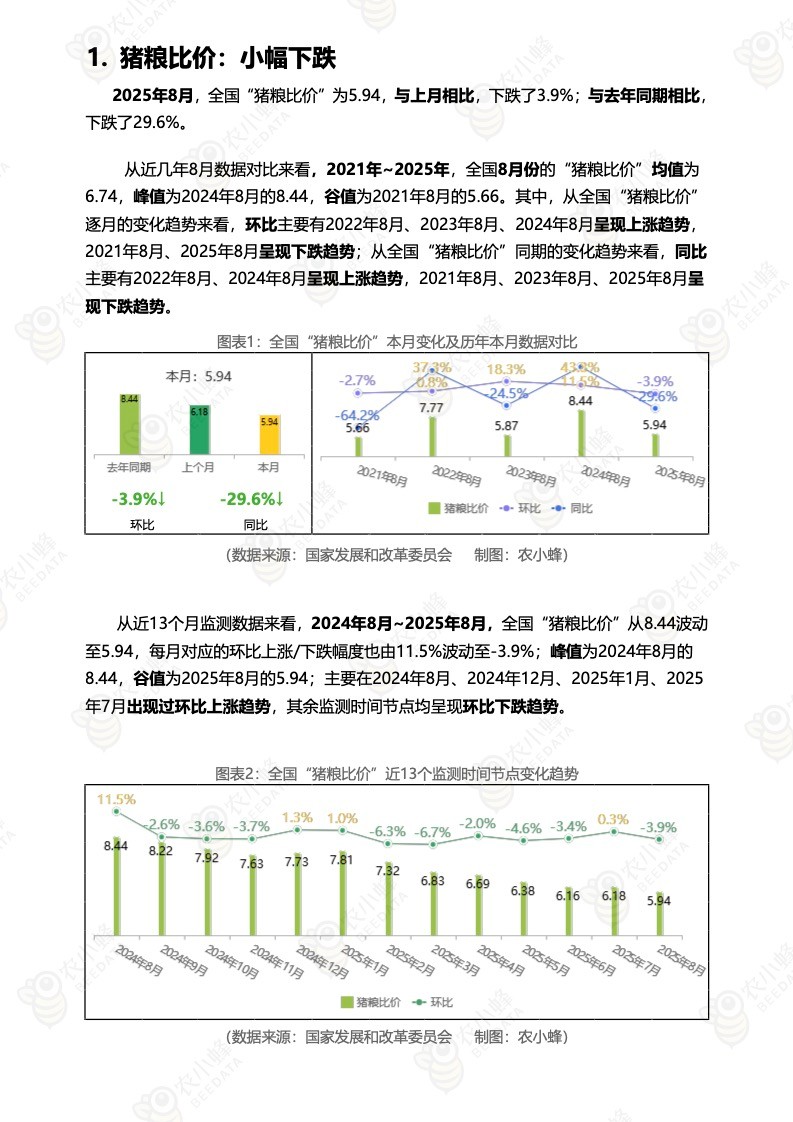 《农小蜂:全国主要猪产品及饲料集贸市场价格监测月报(2025年8月)》