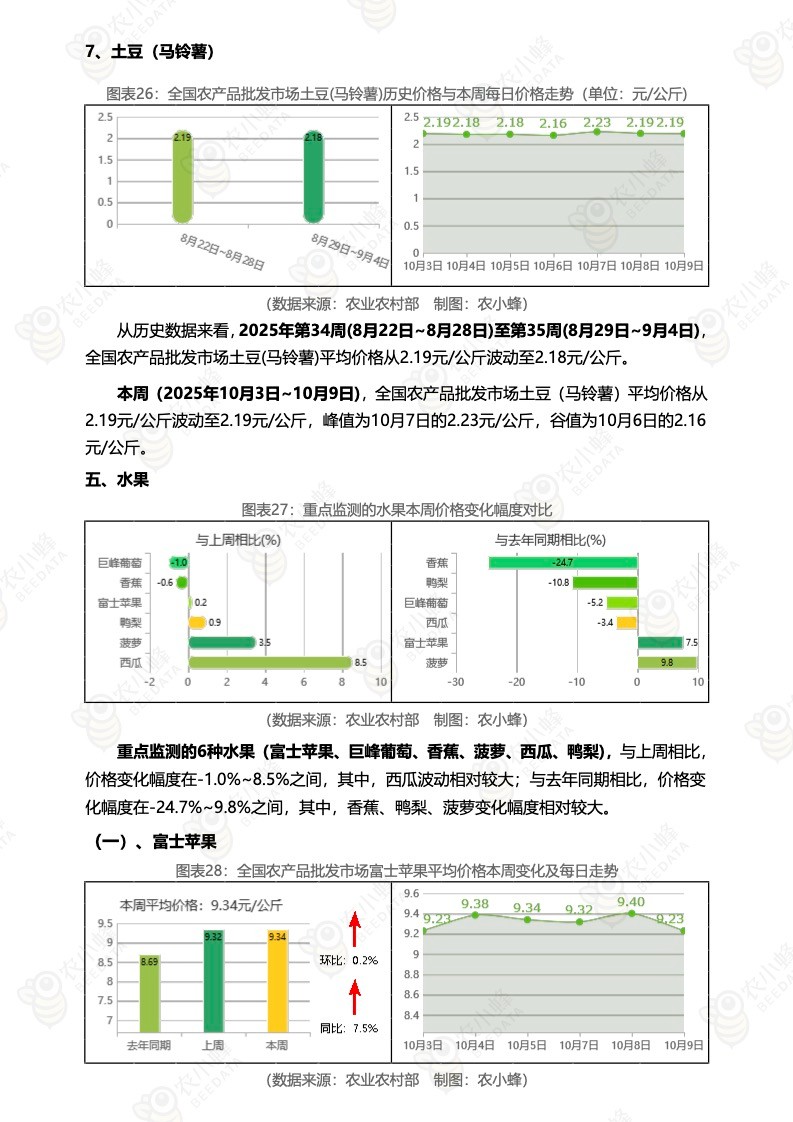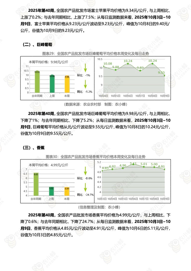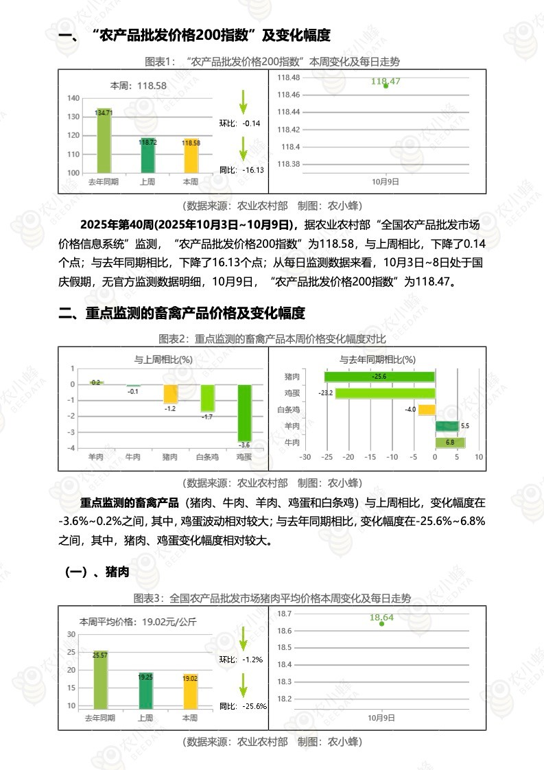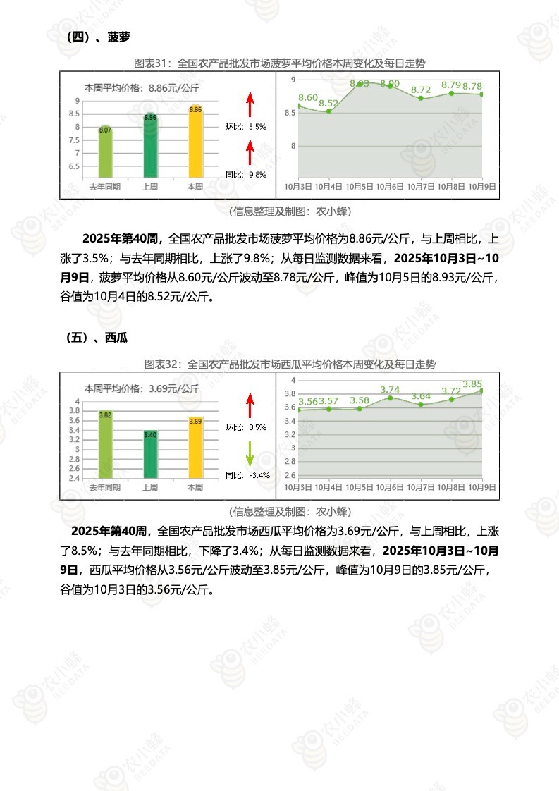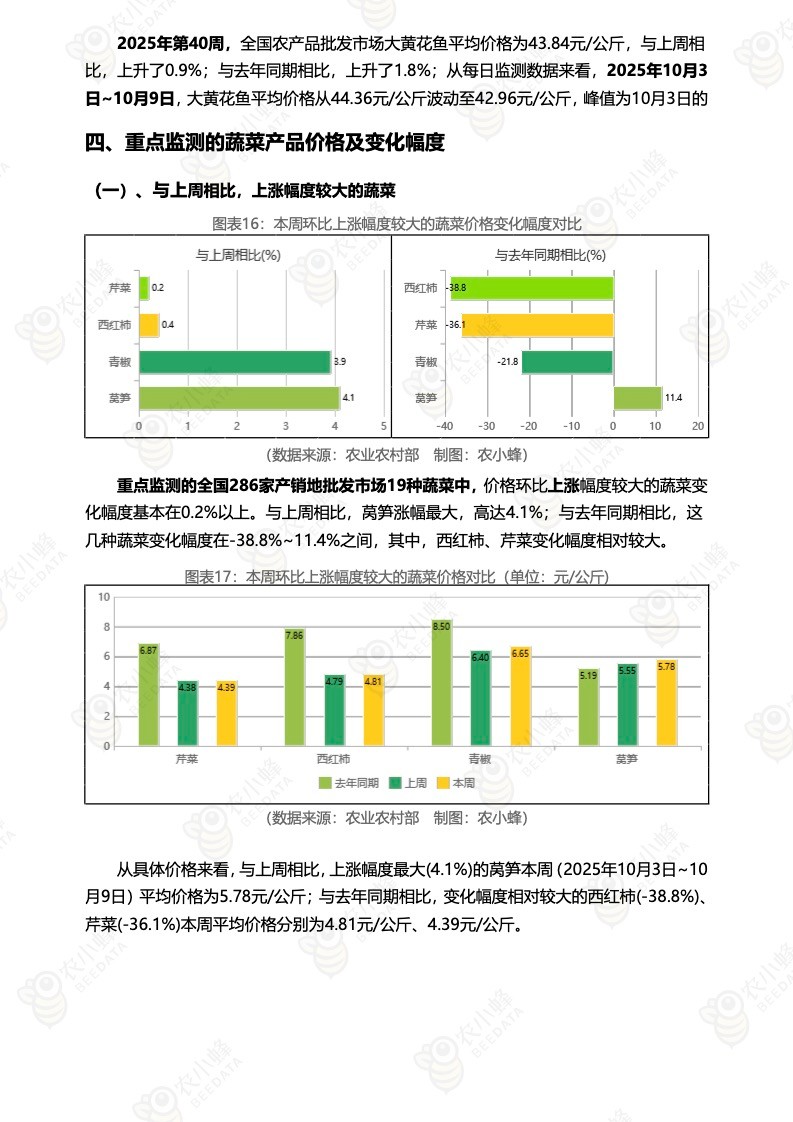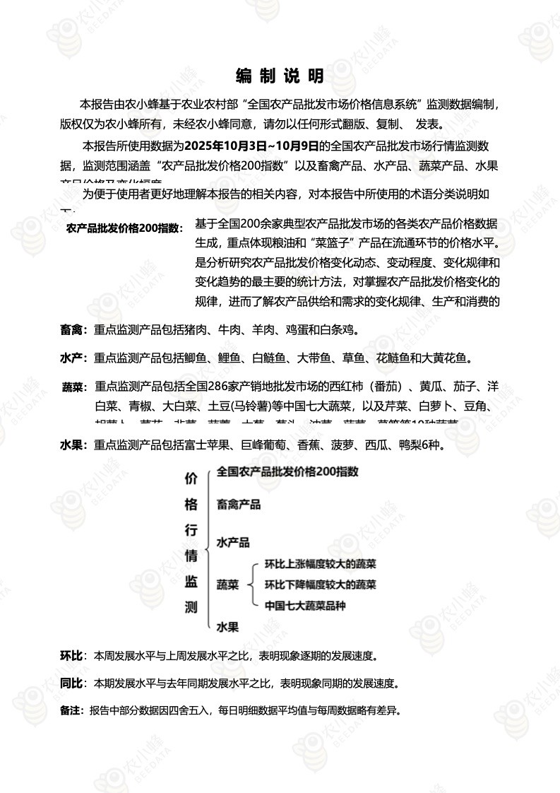 《农小蜂:全国农产品批发市场价格行情监测周报(2025年第40周)》