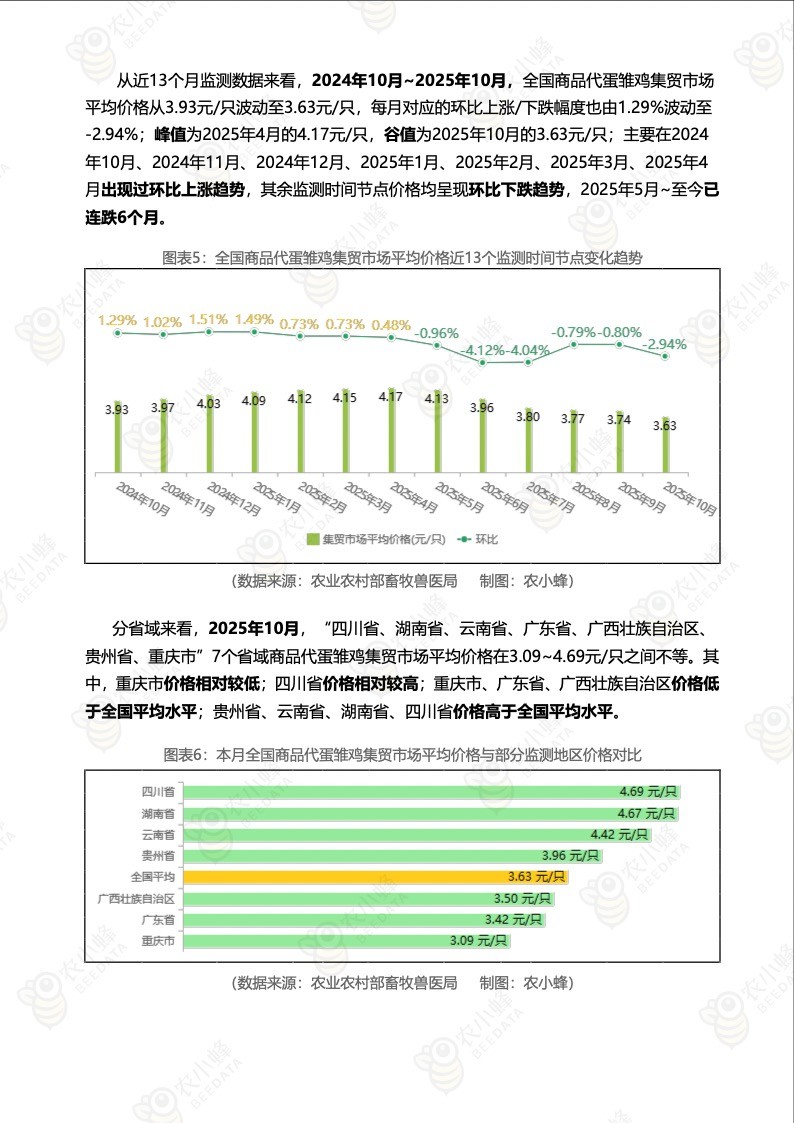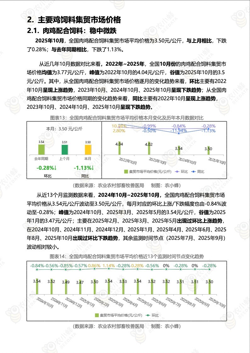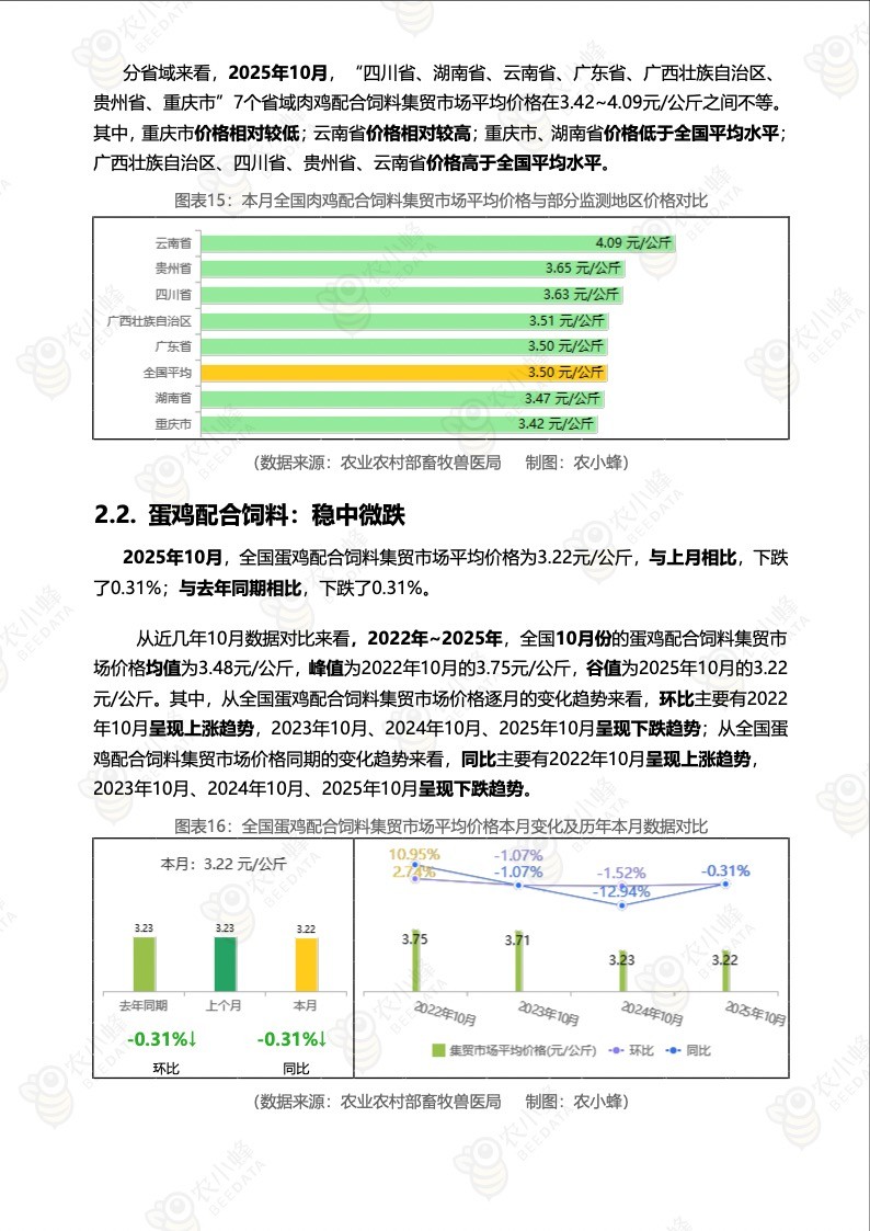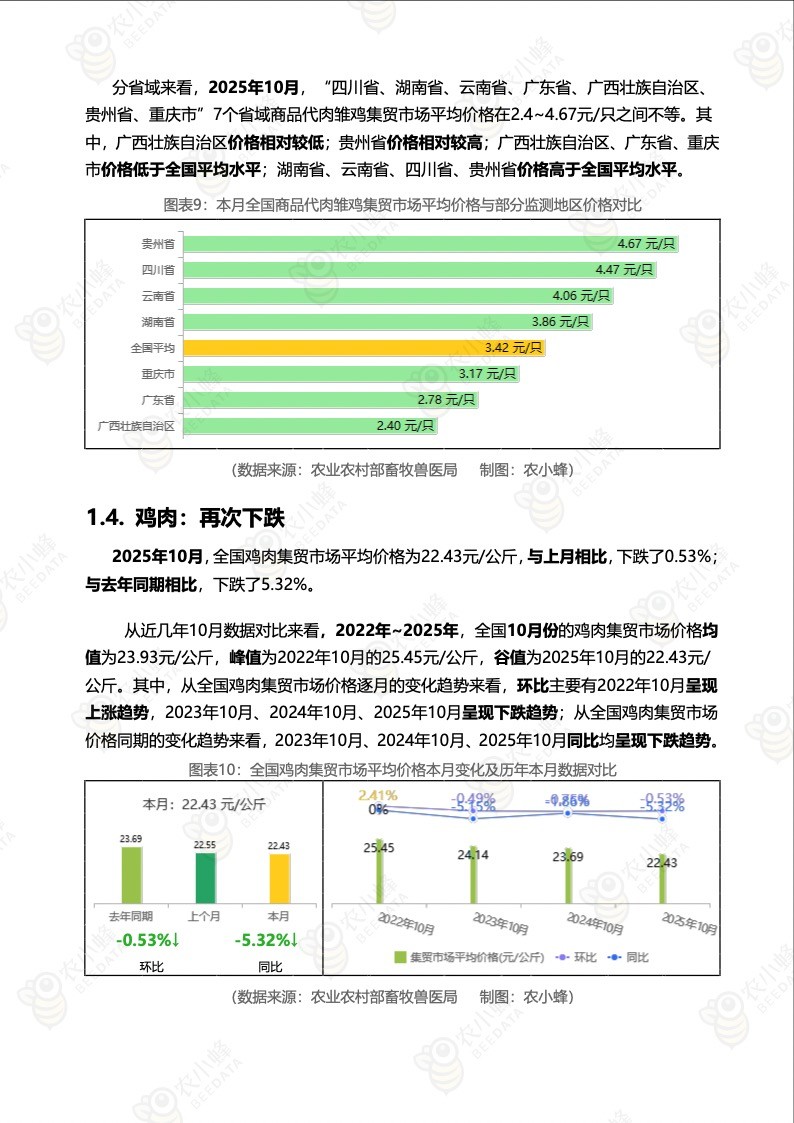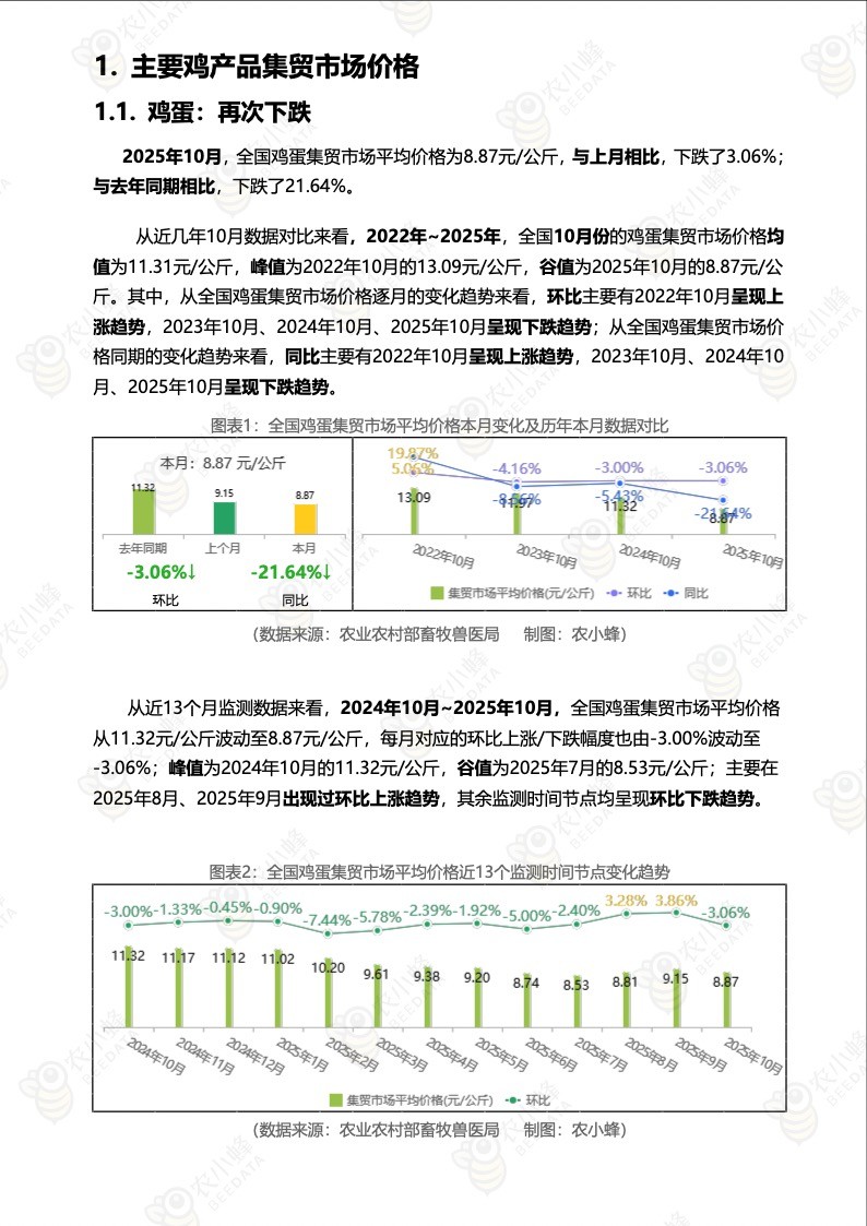 《农小蜂:全国主要鸡产品及饲料集贸市场价格监测月报(2025年10月)》