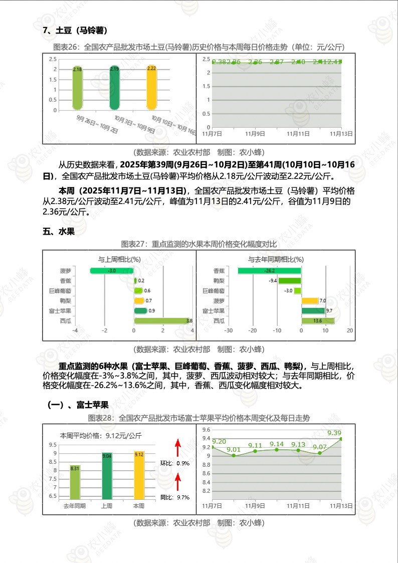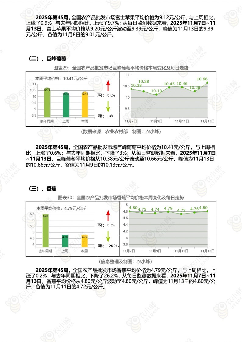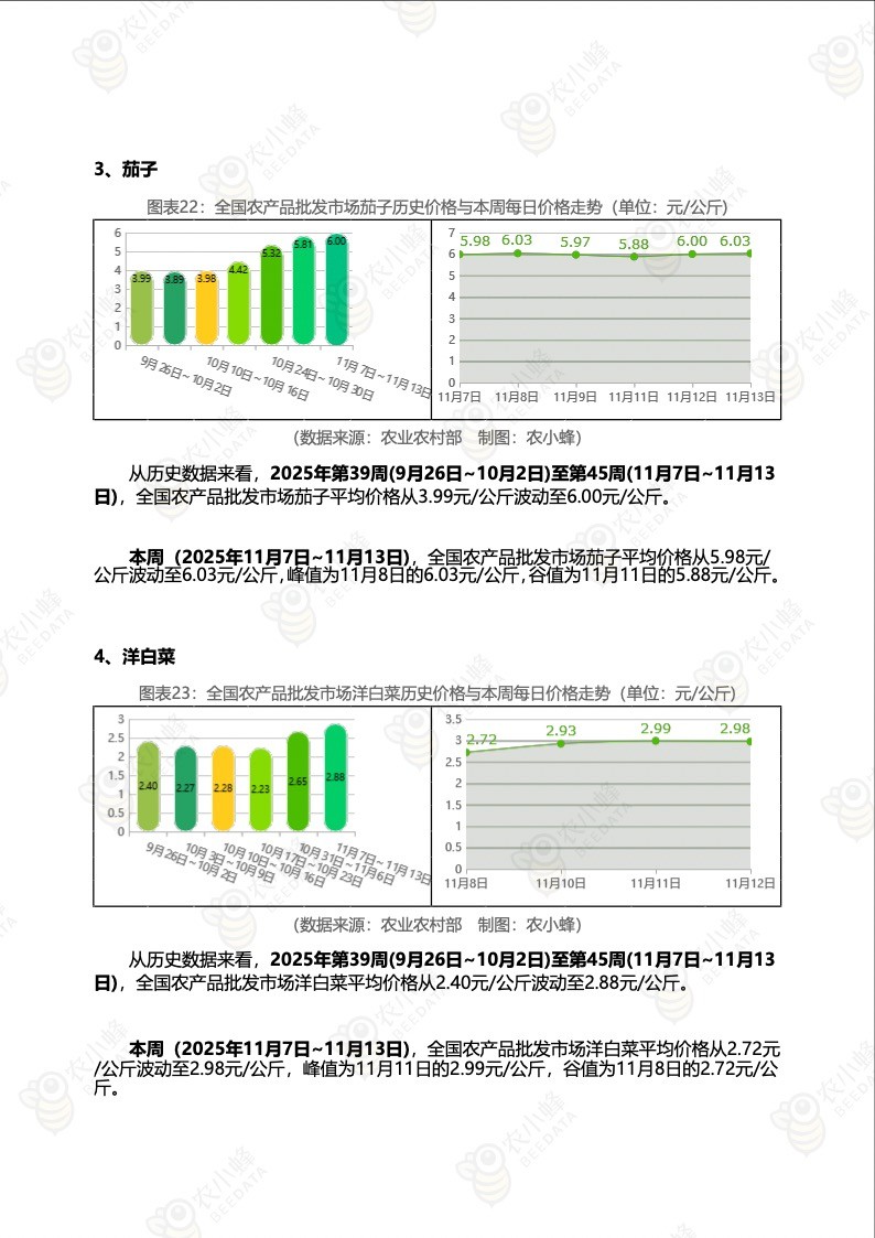 《农小蜂:全国农产品批发市场价格行情监测周报(2025年第45周)》