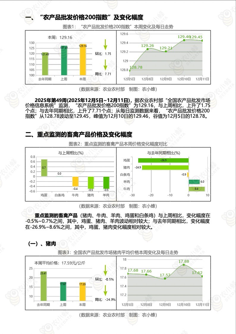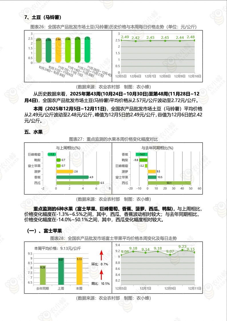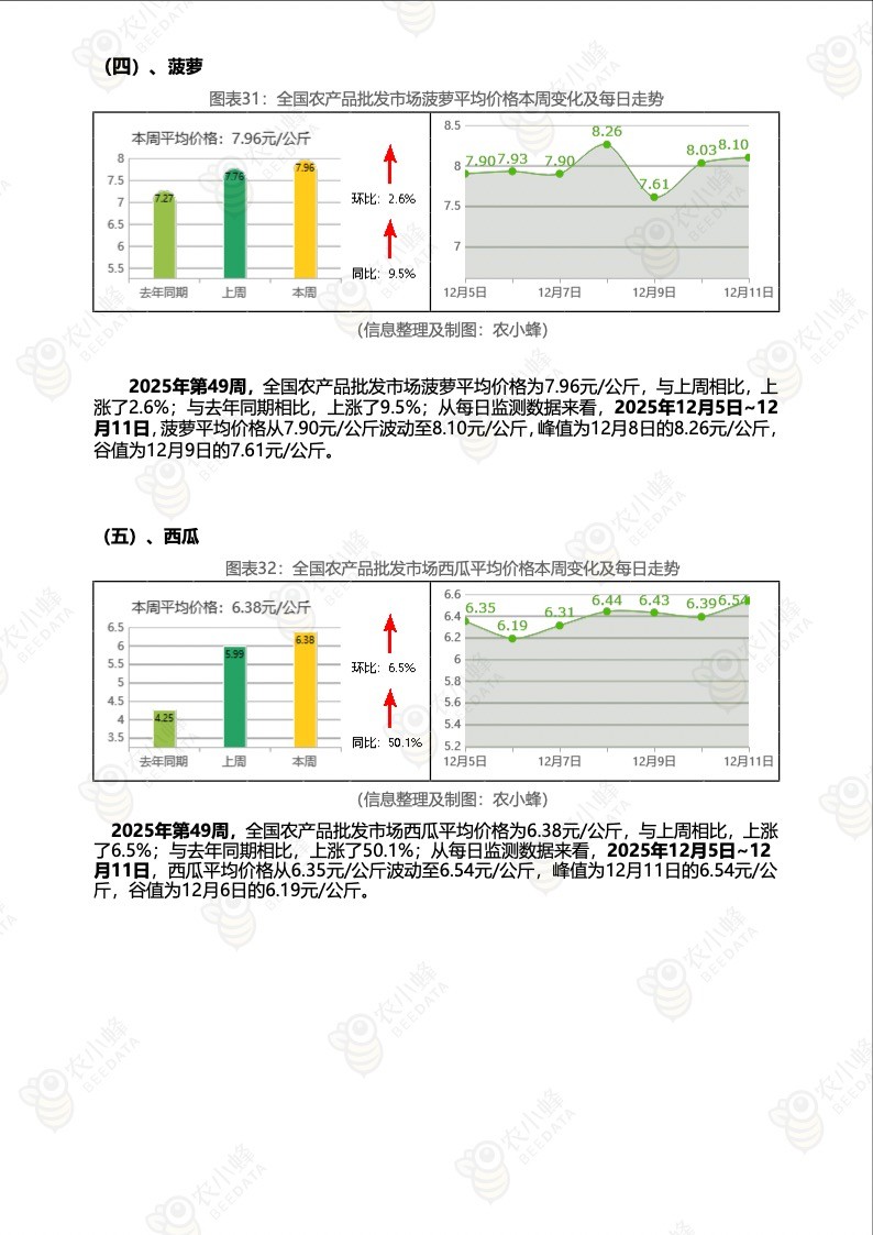 《农小蜂:全国农产品批发市场价格行情监测周报(2025年第49周)》