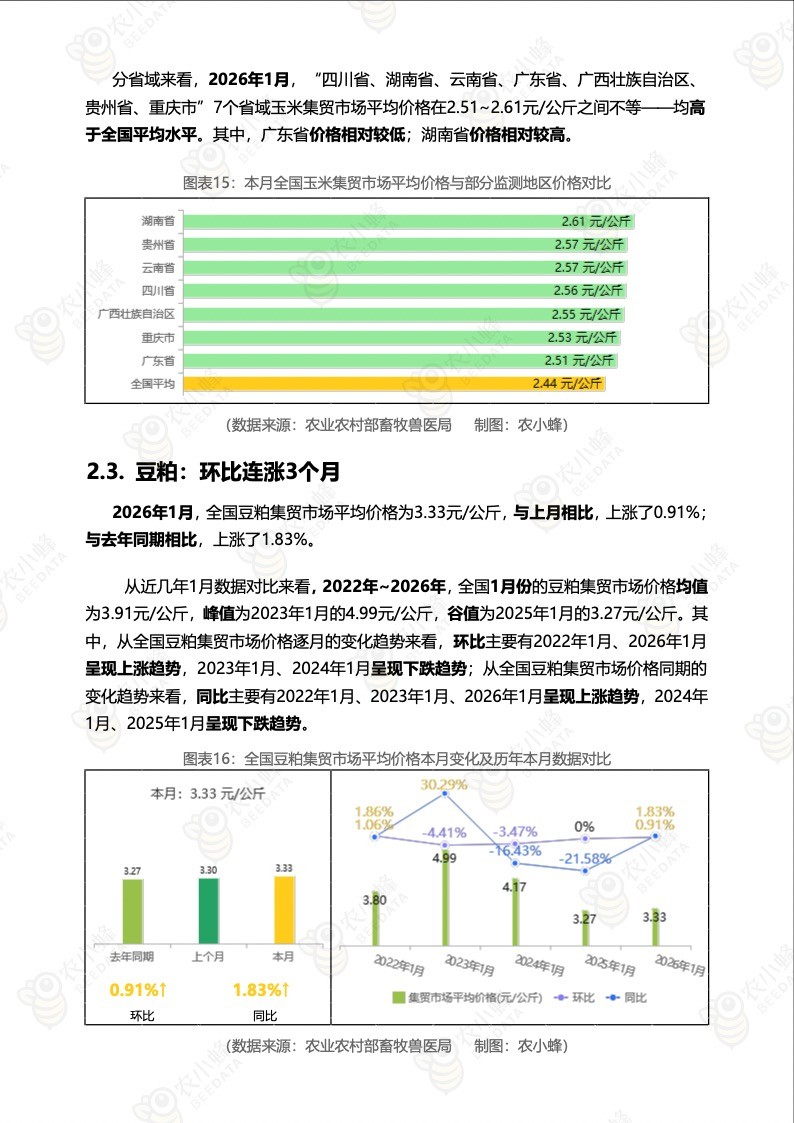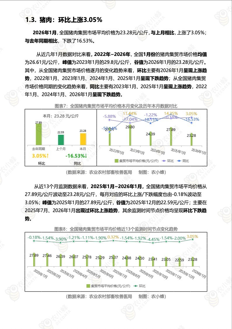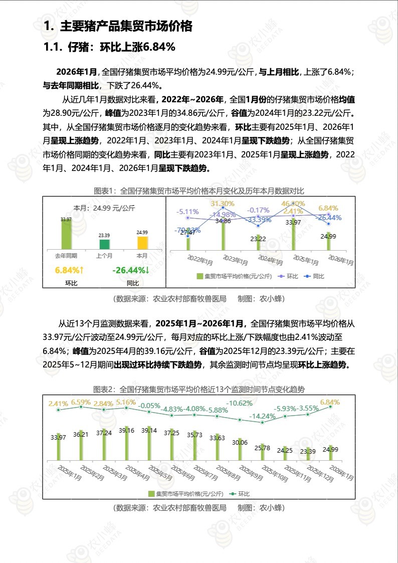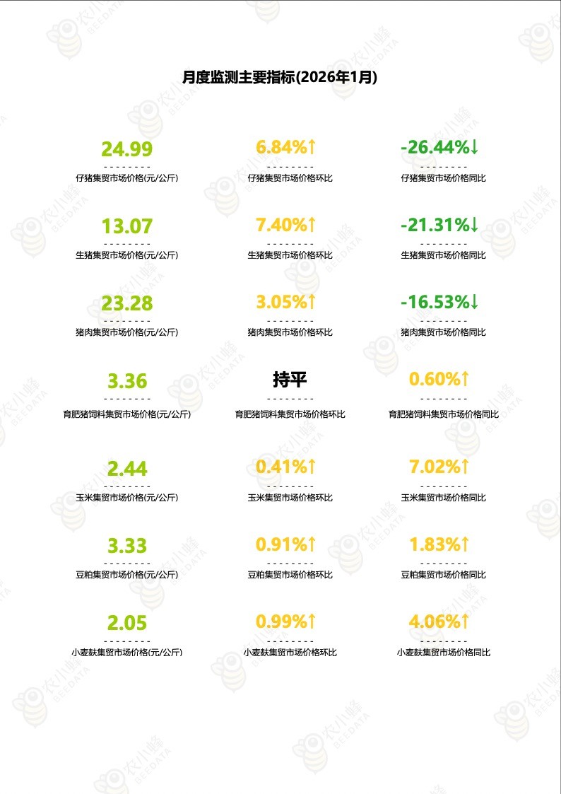《农小蜂:全国主要猪产品及饲料集贸市场价格监测月报(2026年1月)》