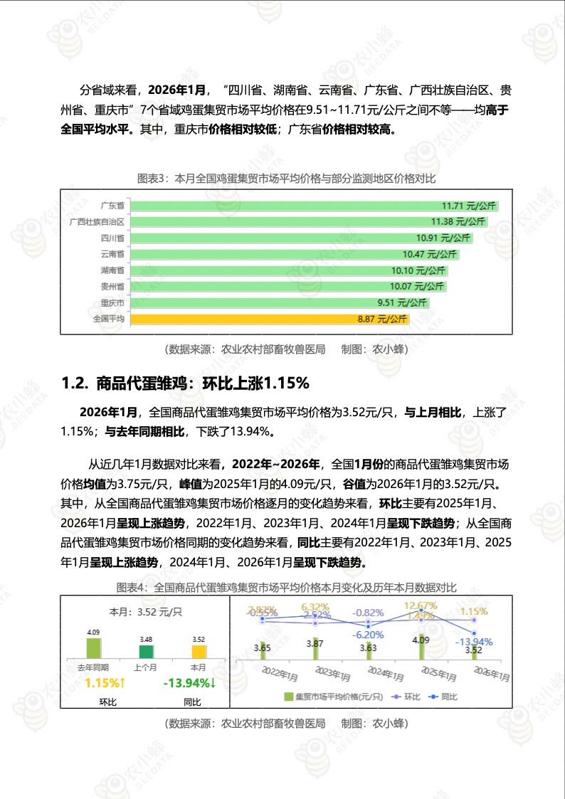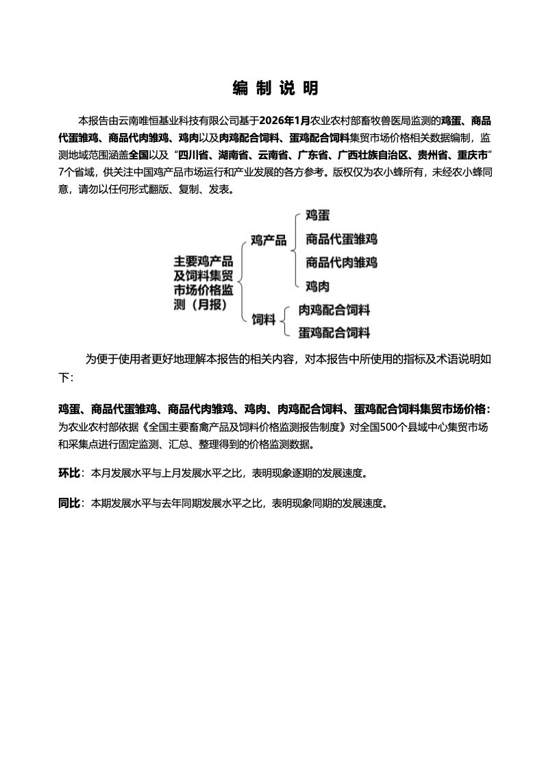 农小蜂-全国主要鸡产品及饲料集贸市场价格监测月报(2026年1月).pdf