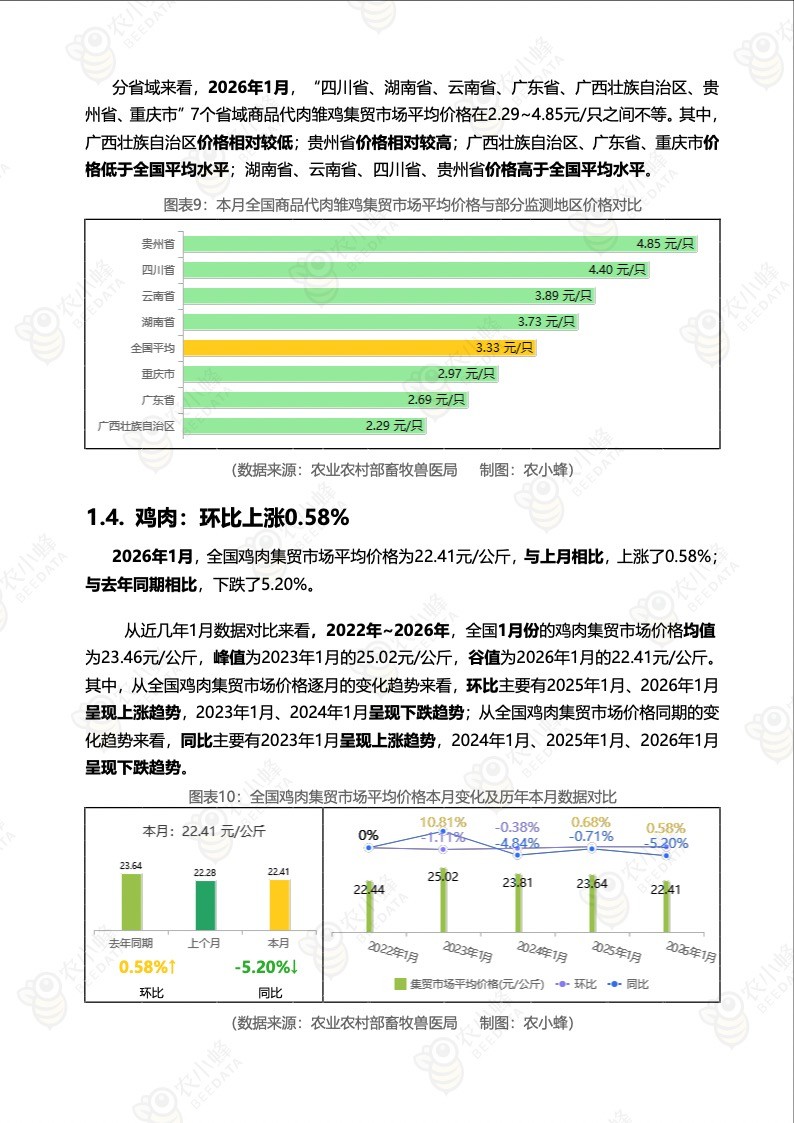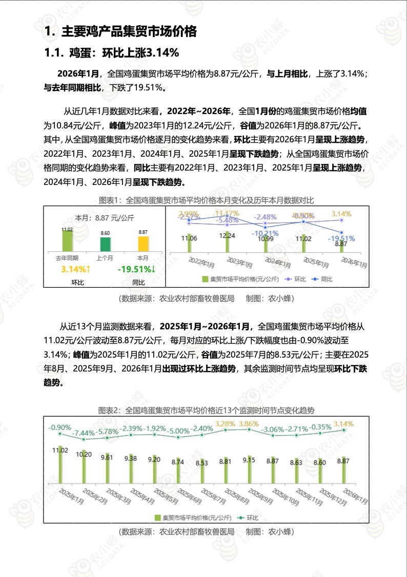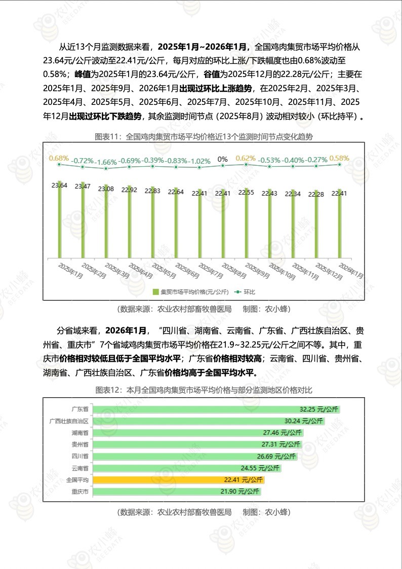 《农小蜂:全国主要鸡产品及饲料集贸市场价格监测月报(2026年1月)》