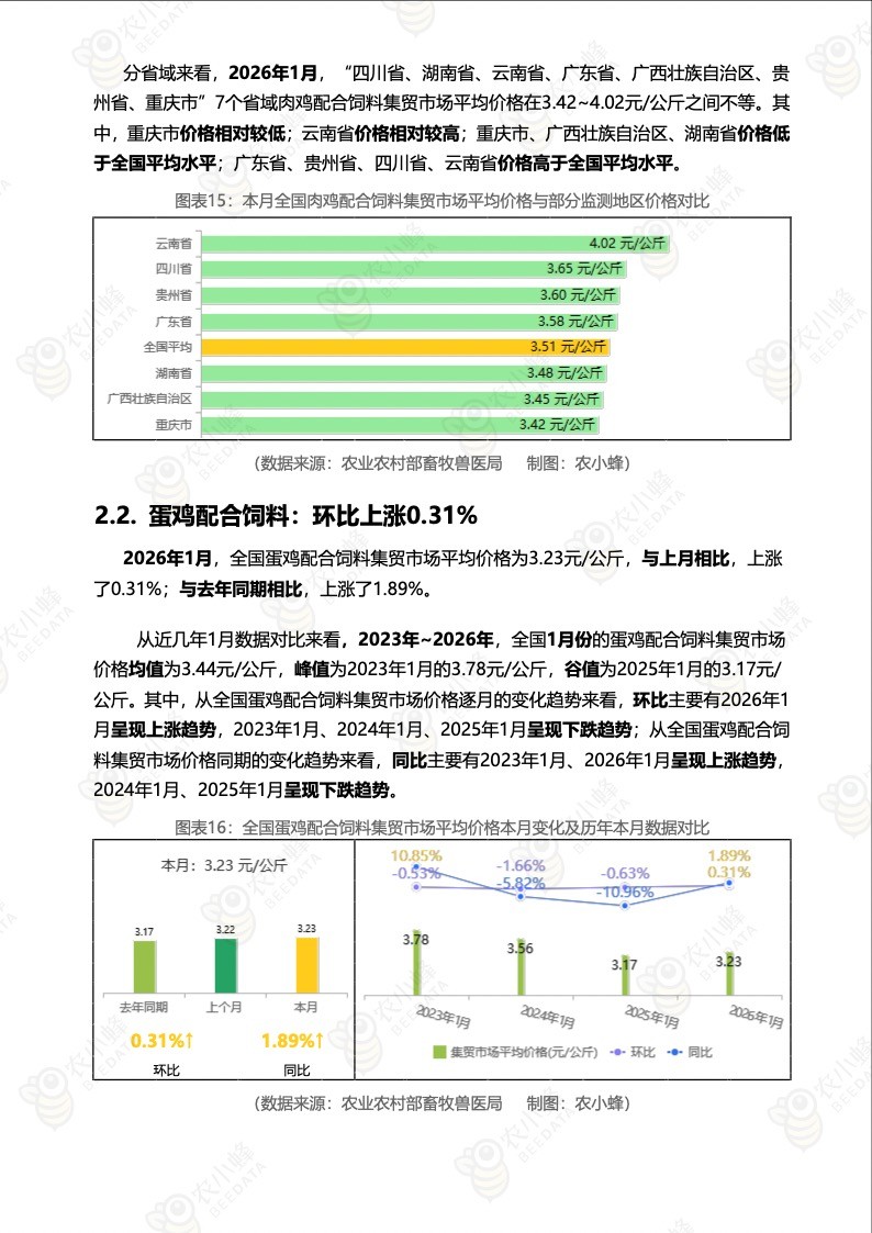 《农小蜂:全国主要鸡产品及饲料集贸市场价格监测月报(2026年2月)》