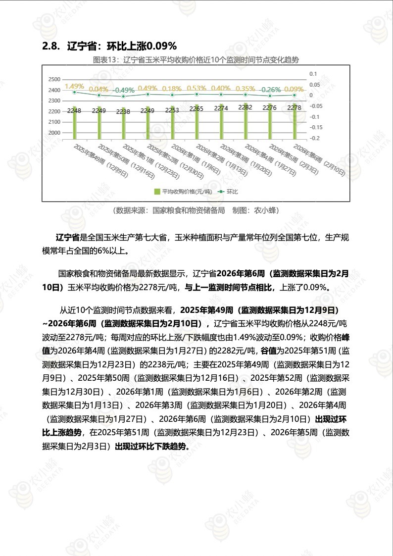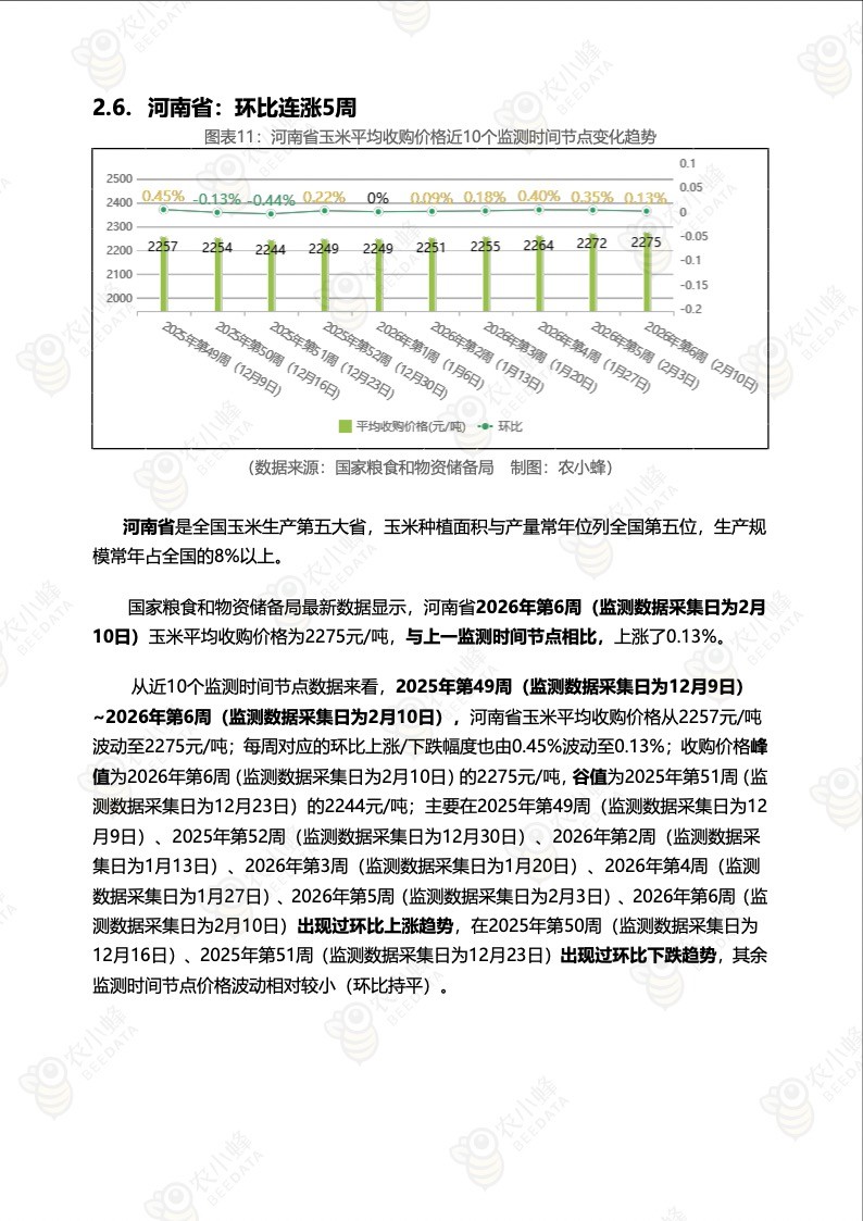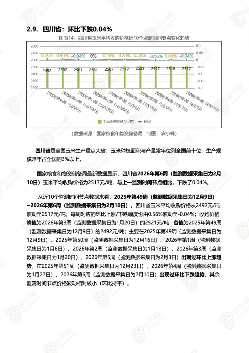 《农小蜂:全国玉米价格行情监测周报(2026年第6周)》