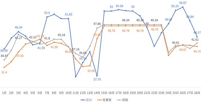 图5:2026年2月江川、花易宝、花伍洋桔梗日价格走势