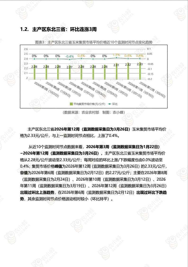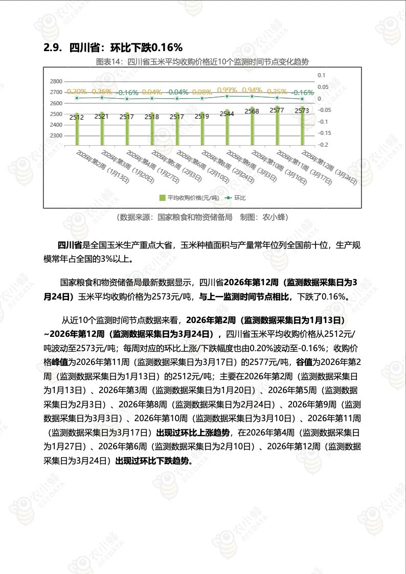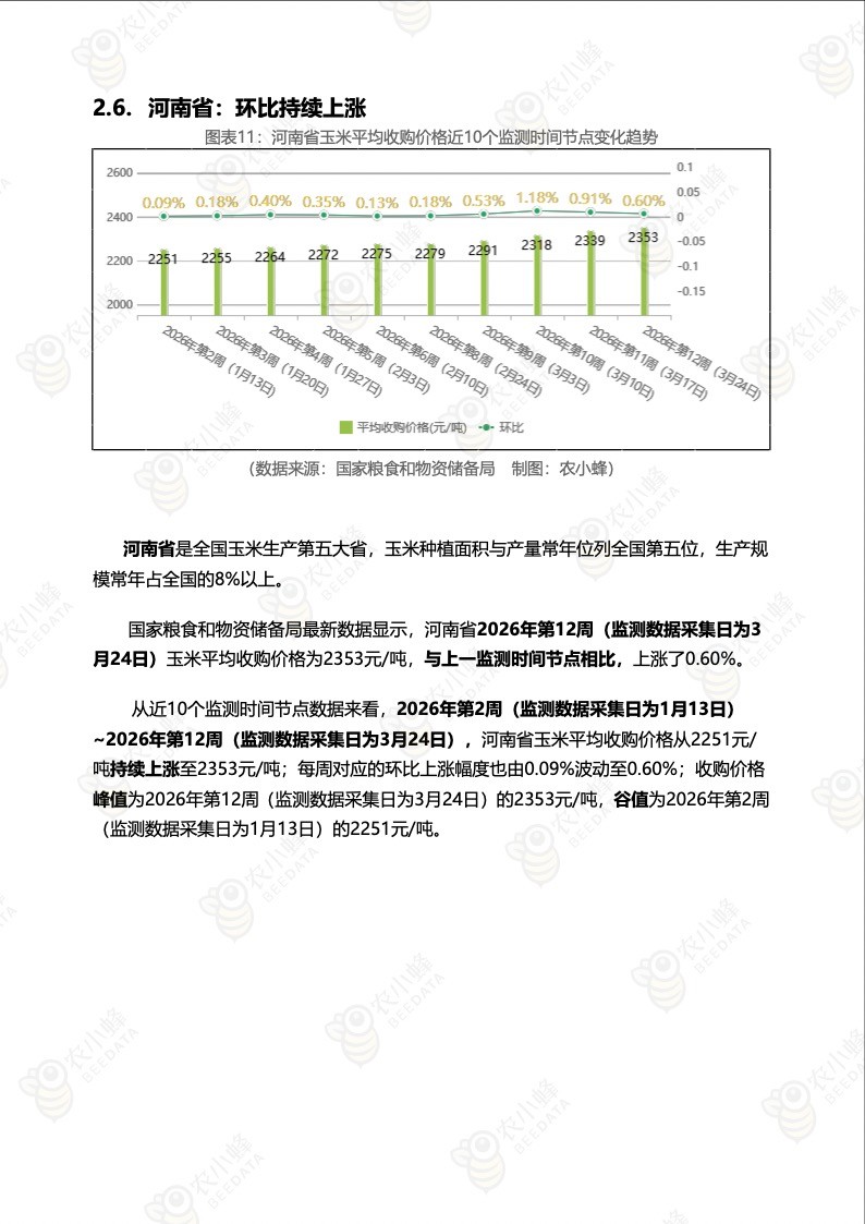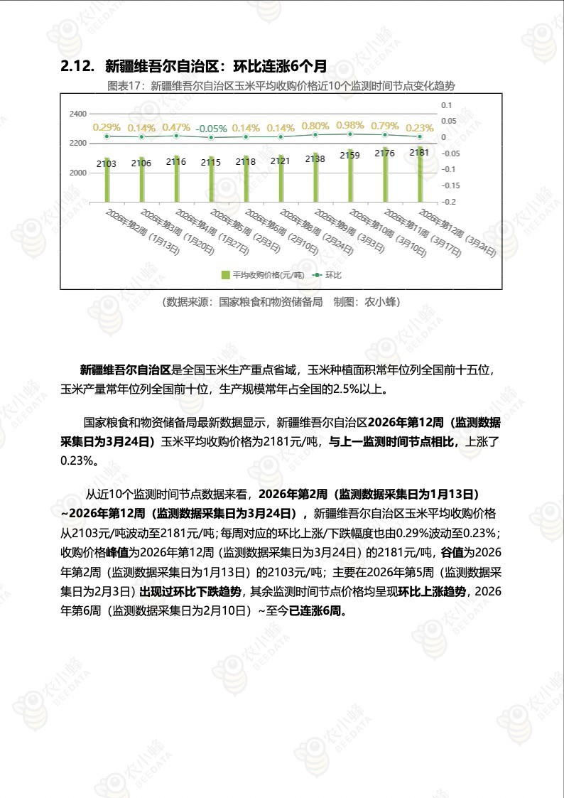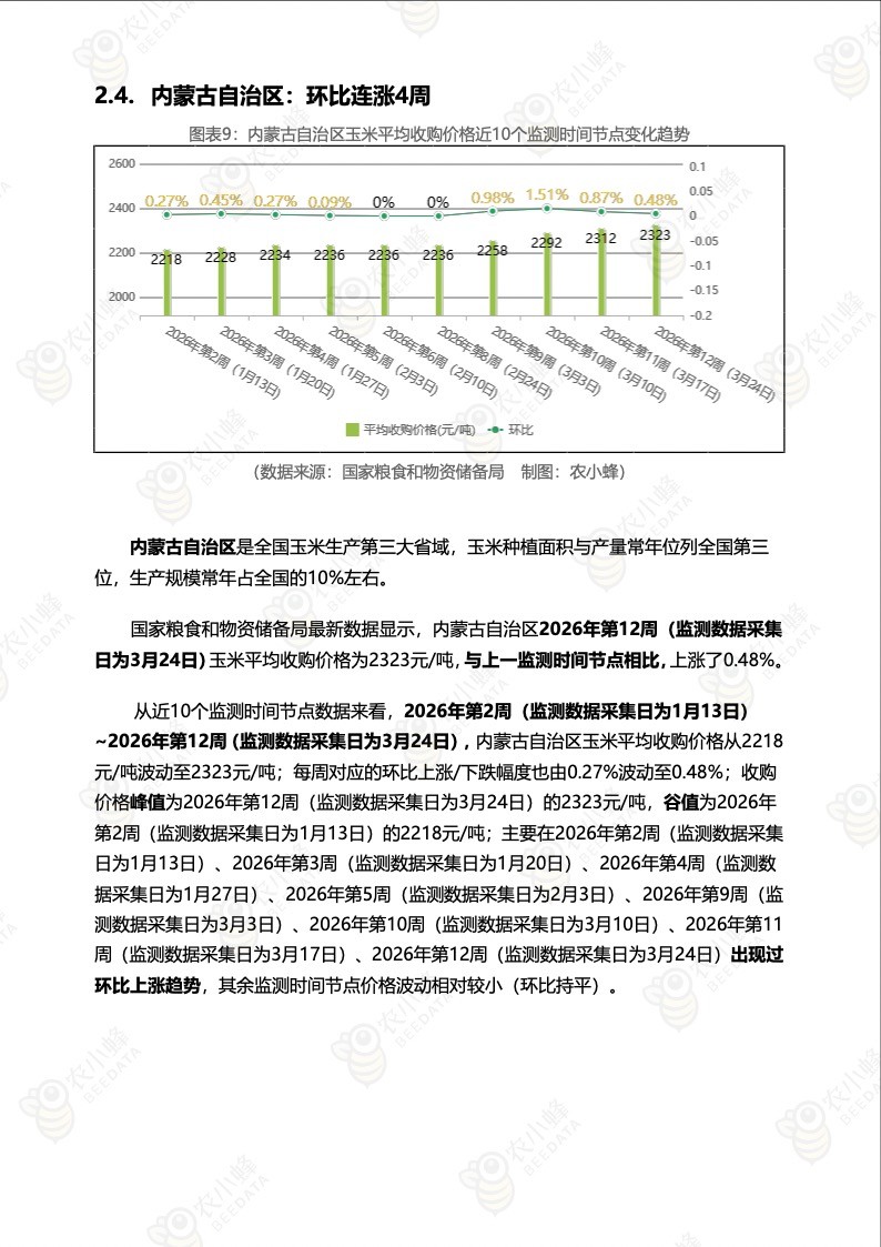 《农小蜂:全国玉米价格行情监测周报(2026年第12周)》