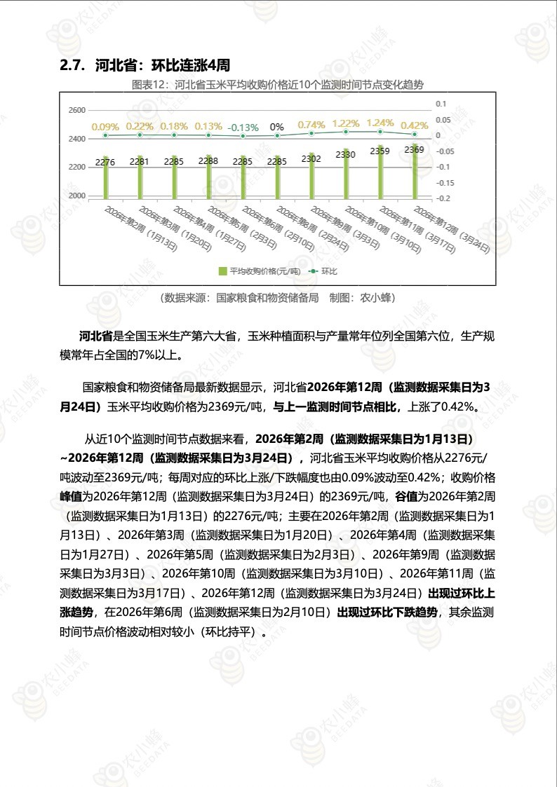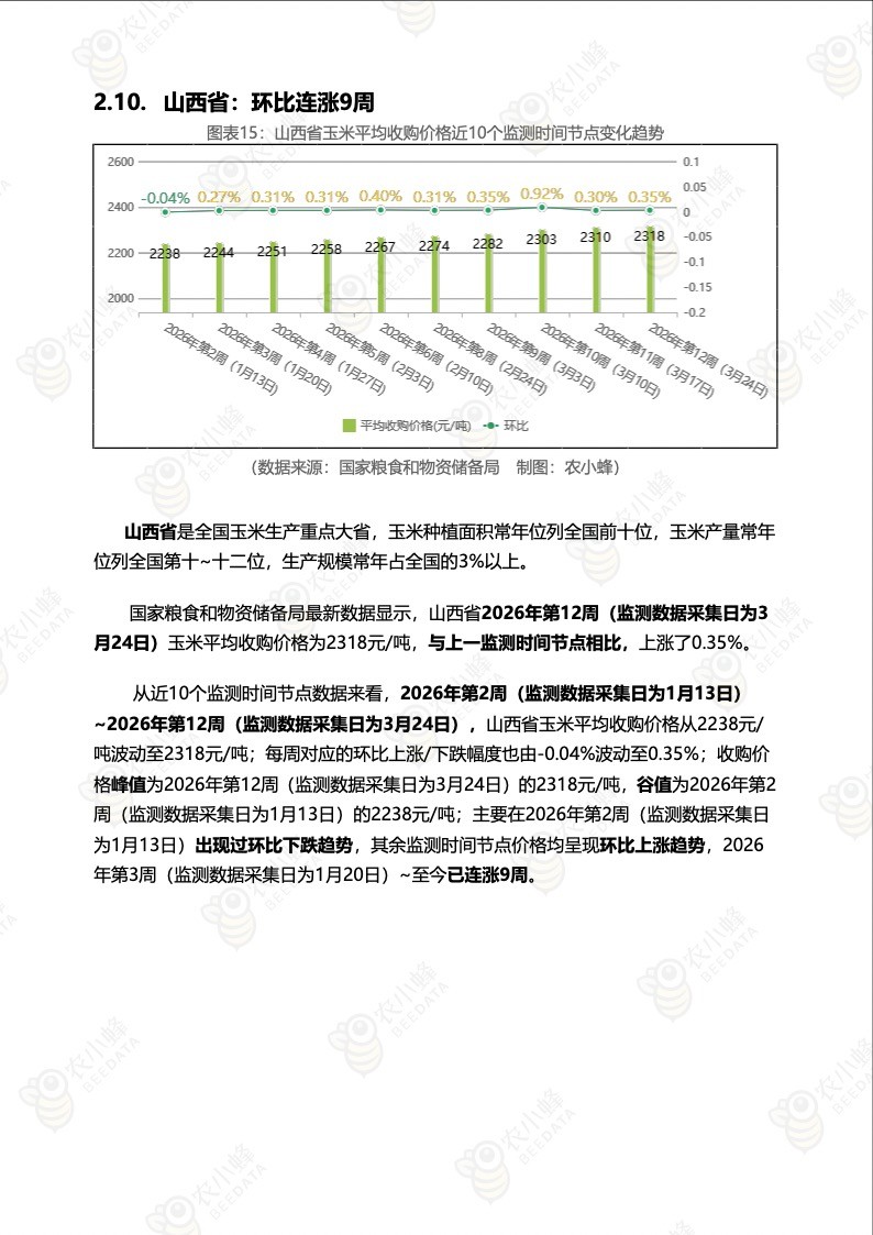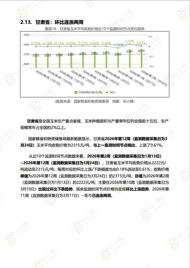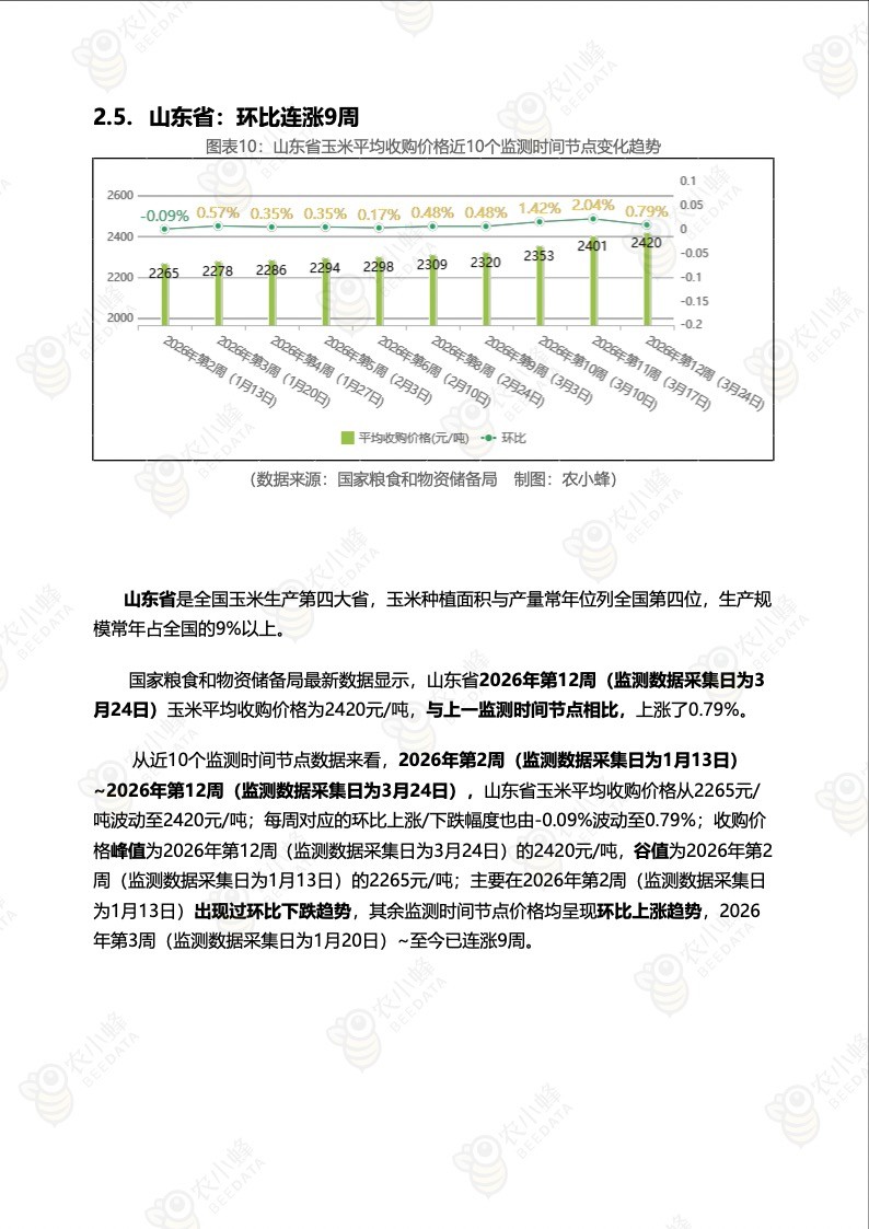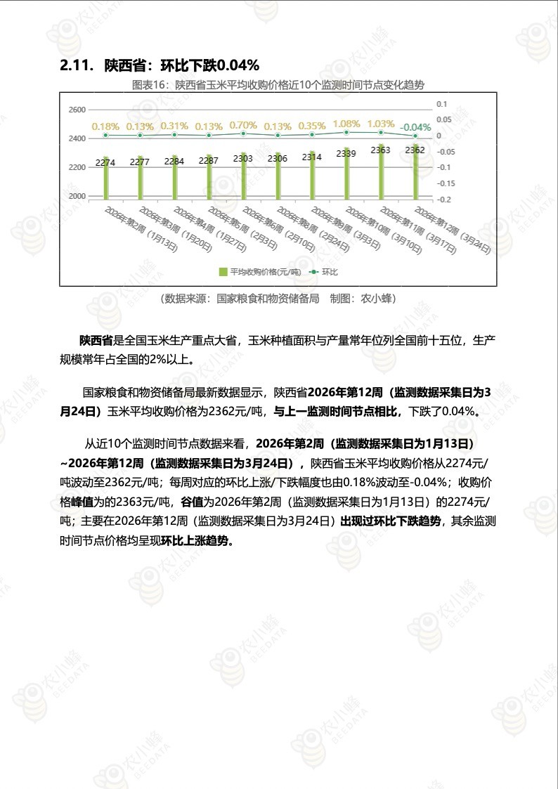 《农小蜂:全国玉米价格行情监测周报(2026年第12周)》