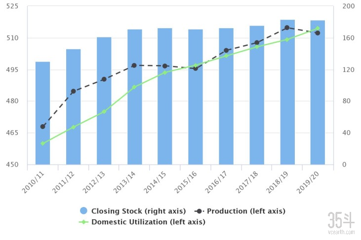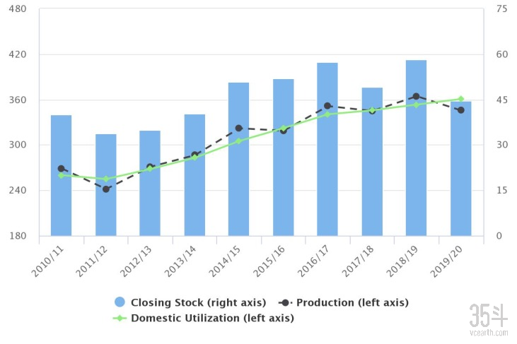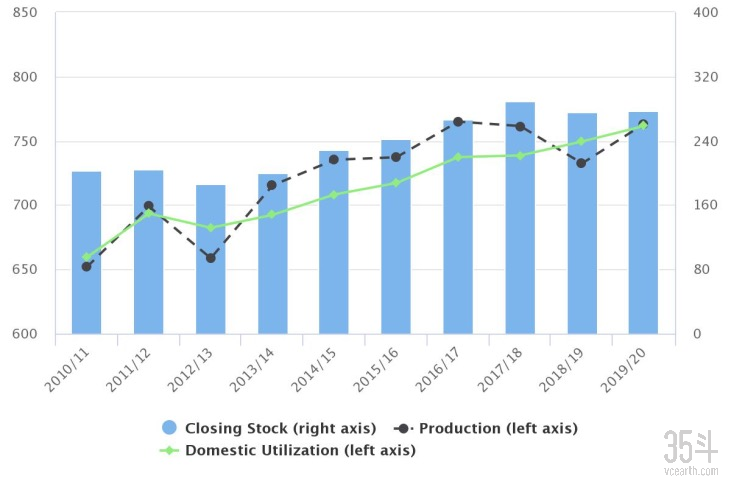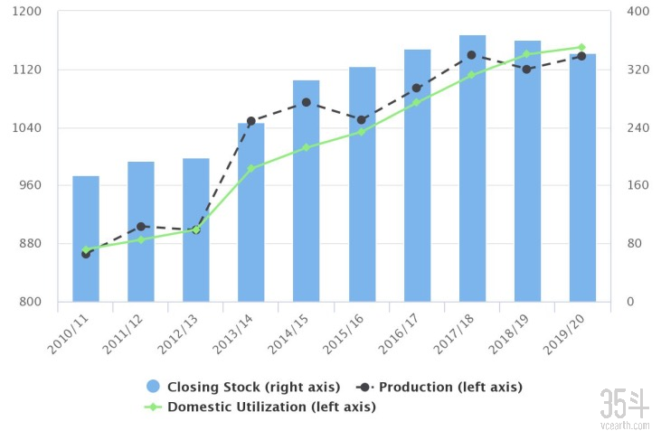 主食商品库存充足(见图),2020年的收成前景良好,这可以保证粮食的供应。但是供应链中的物流中断是有可能出现的新问题。例如,阿根廷是世界上最大的豆粉牲畜饲料出口国,阿根廷中部的罗萨里奥是阿根廷主要的谷物出口中心,也是主要的大豆生产区。最近,为了减缓病毒的传播,罗萨里奥附近的几十个市政府封锁了谷物卡车进出城镇,大豆因此无法被运往压榨厂,影响了该国用于牲畜的豆粕出口。同样,在另一个主要的主食商品出口国巴西,也有报道称物流方面的困难使粮食供应链面临风险。在国际上,如果像巴西的桑托斯或阿根廷的罗萨里奥这样的主要港口关闭,将可能给全球贸易带来灾难。