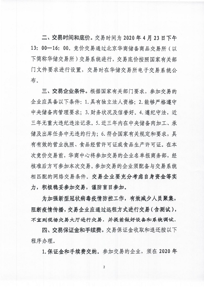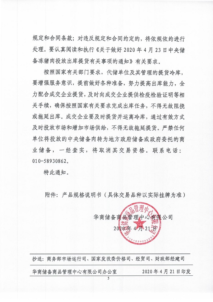 华储网:关于2020年4月23日中央储备冻猪肉投放1万吨