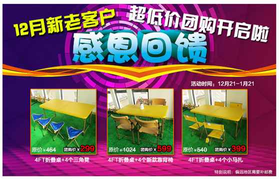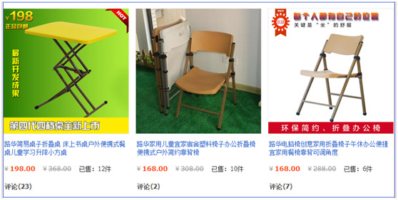 不跟路边小摊贩用桌,甚至不跟家庭用的便携式用桌、学生用桌等去竞争,明确定位,做专业的户外便携式折叠桌椅等。比如钓鱼、户外旅游等等。这样因为针对的人群是钓鱼的、户外旅游的,相对来说层次上来了,也比较容易接受你这个高价格。对于学生来说(不包含学生写生用),毕竟他们接受低价格还是容易的。