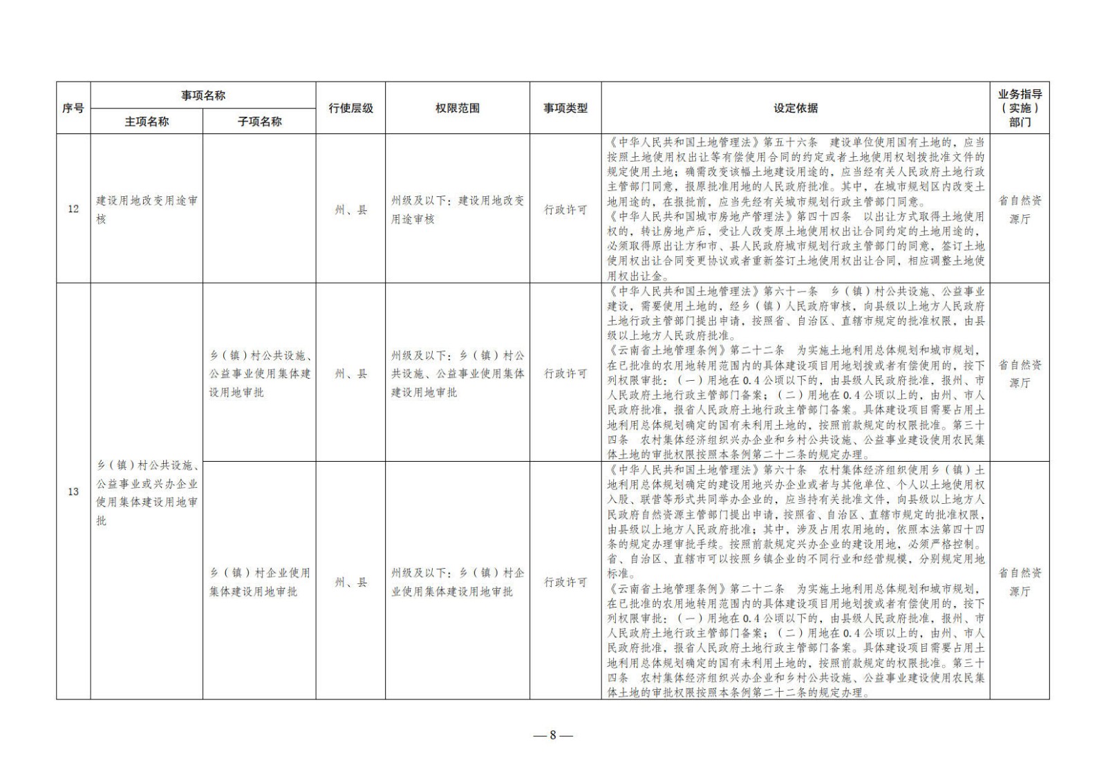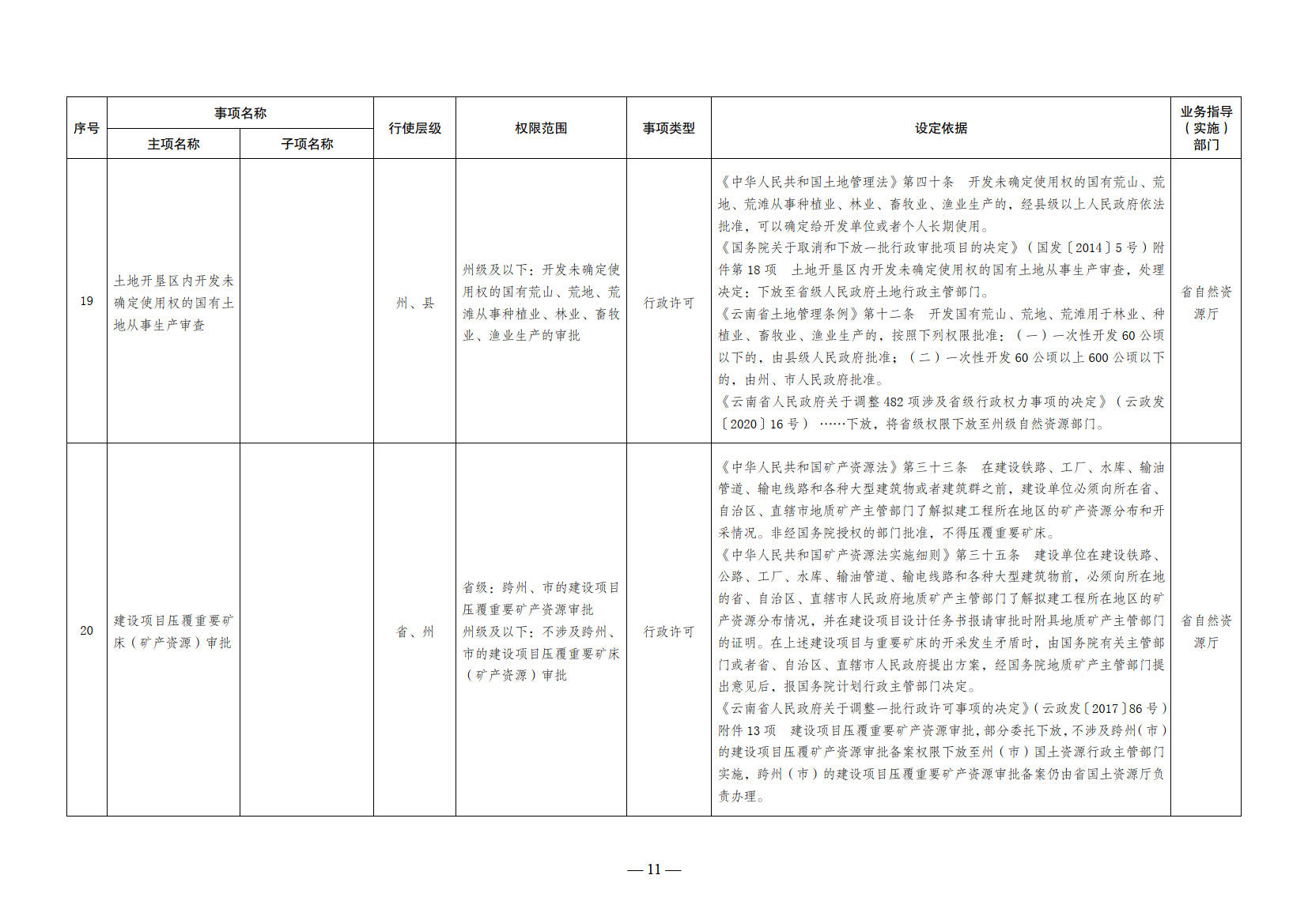 云南省自然资源厅关于公布自然资源主管部门政务服务事项基本目录(2020年版)的通知