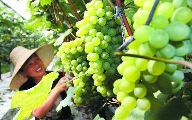 大棚栽培的葡萄冬剪要在葡萄植株落叶后完全进入深度休眠后进行,一般于12月中旬开始至12月底前完成。根据栽培的不同架式,品种的特性、树势的强弱决定修剪的具体方法。大棚葡萄栽培架式一般采用篱架、V型架和小棚架。篱架修剪时选留结果母枝蔓的方位留顺葡萄架拉线朝上的枝芽;V型架结果母枝蔓的选留方位应偏向两侧;小棚架因定植株距相对要密则应采取小龙杆的整形方法,在主蔓上直接选留结果母枝。按品种特性修剪,对紫脆、早红提、夏至红等品种的修剪应采用中长梢剪头,中庸的结果母枝留4~6芽短截。偏壮的结果母枝留6~8芽剪头。亩留芽量7000~8000个,以备抽梢后能辨花穗时进行调节。