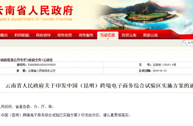云南省人民政府关于印发中国(昆明)跨境电子商务综合试验区实施方案的通知